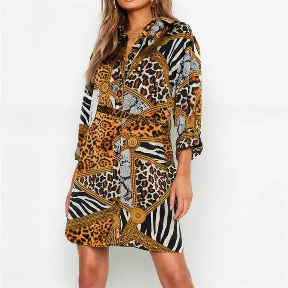 Awaken the inner wild side with the edgy Paola mini dress. Imagined in a lightweight and airy chiffon, this dress boasts an A line silhouette, turn-down collar and vibrant, leopard print. Wear with black pumps or sandals for a sophisticated, evening ensemble.Â