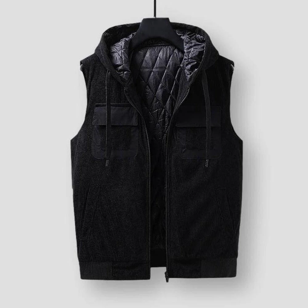 The ultimate mid-layer piece for casual-cool comfort and effortless style. The soft cotton filling lends unbeatable warmth to this casual vest, while the zip-up front and hood provide added protection on cooler days. Complete with two chest pockets that store small essentials close at hand.