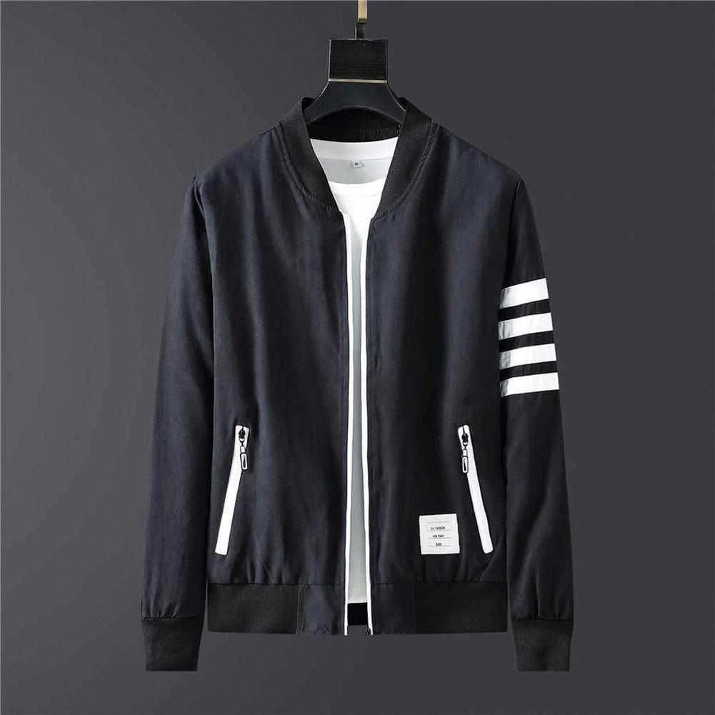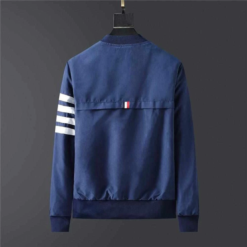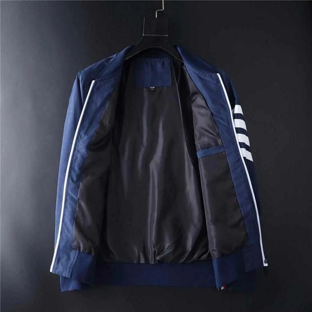 Layer over casual tees for an effortlessly stylish ensemble. Made from a lightweight blend, this jacket features a slim fit, with ribbed cuffs, zip-up front, zipper pockets, and striped details, delivering a versatile wardrobe staple for year-round styling.