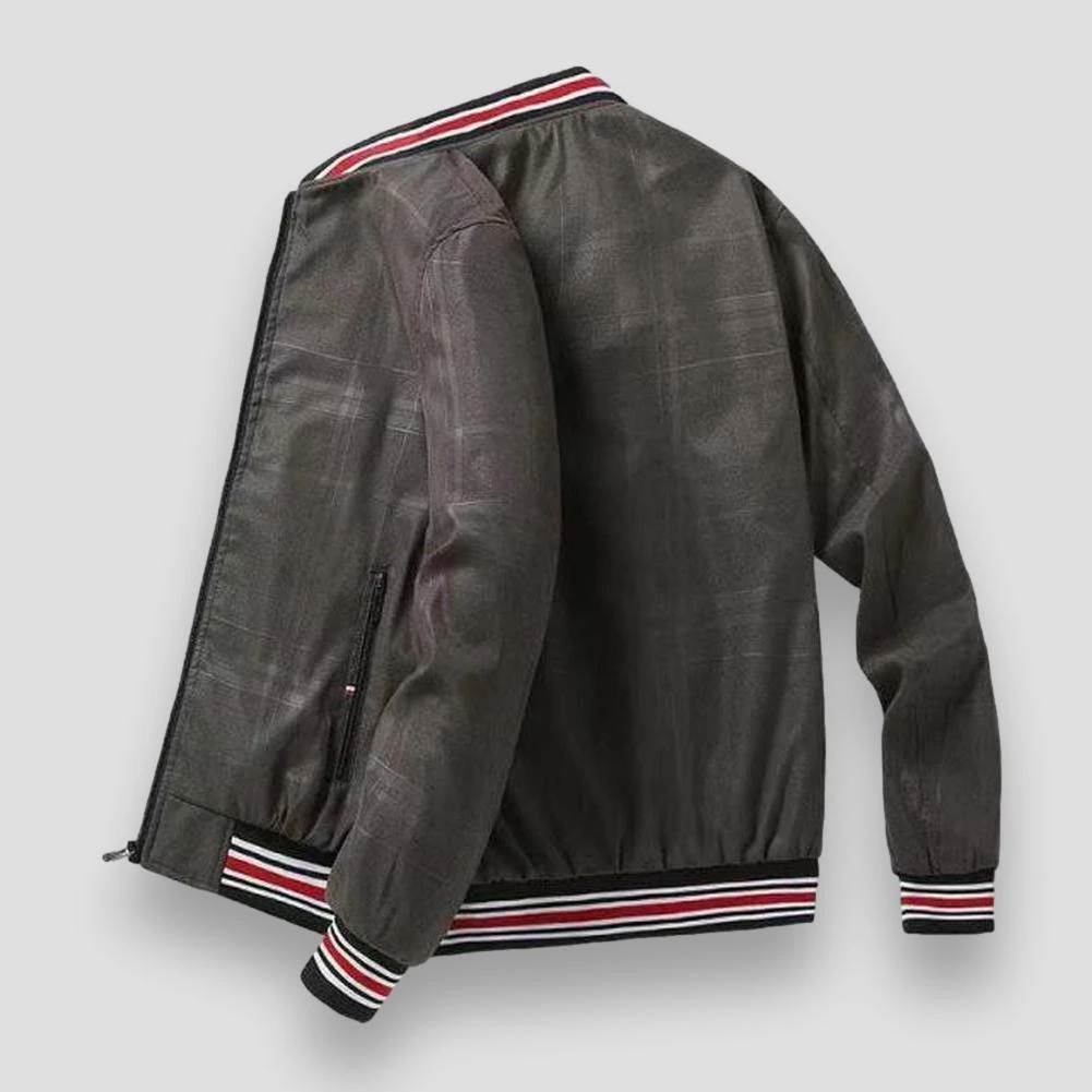This year-round staple boasts a soft lining to retain warmth without sacrificing style. Cut in a slim fit, this baseball-inspired jacket is adorned with contrasting stripes on the cuffs and collar, while a subtle plaid pattern decorates the overall design. Complete with zip pockets that safely store your essentials close at hand.
