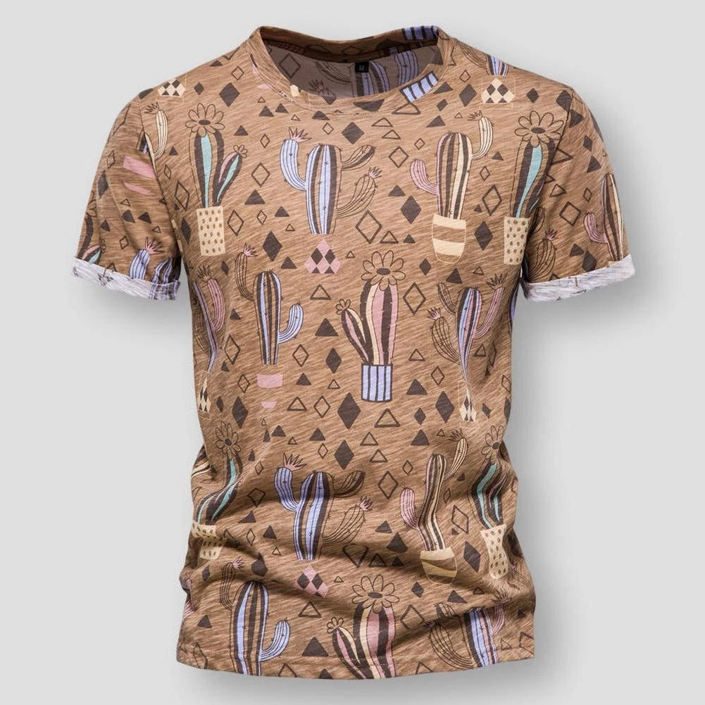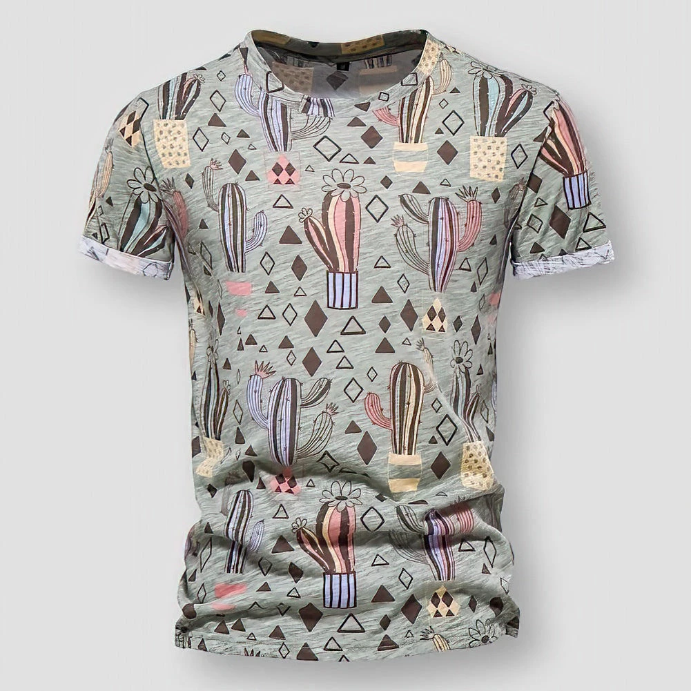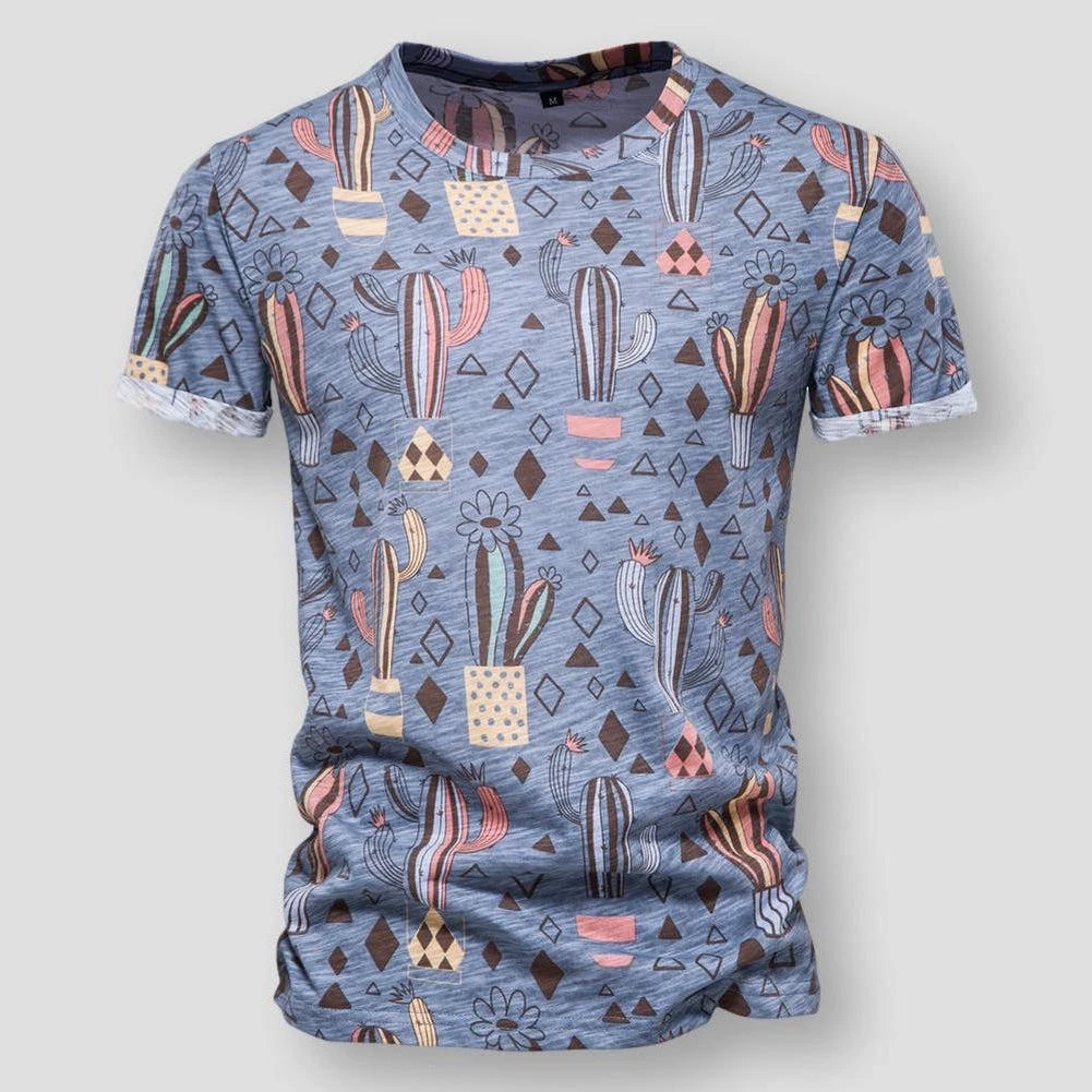 Soft, breathable cotton lends irresistible comfort to this graphic t-shirt. Cut in a slim fit, it boasts a colorful cactus print that perfectly matches your summer holiday wardrobe. Team up with linen shorts and espadrilles for a laid-back vibe.