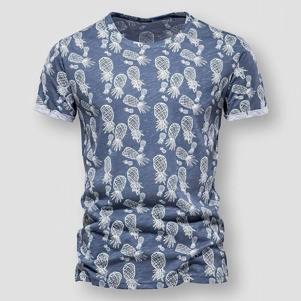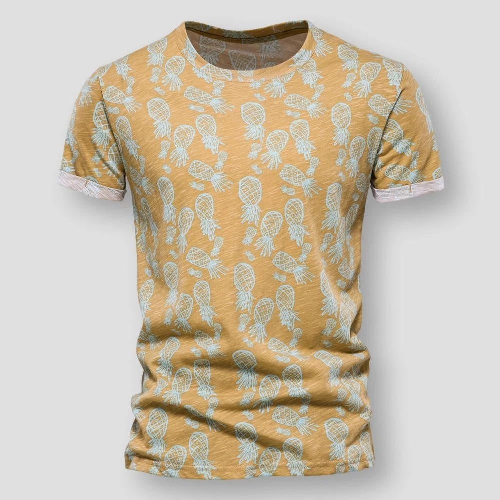 A tropical-inspired pineapple print invites carefree sunshine-filled days. Made from pure cotton, this stylish t-shirt boasts a sleek silhouette and a vibrant print that’s just as unique as you are. Perfect for poolside lounging or seaside dinner parties.