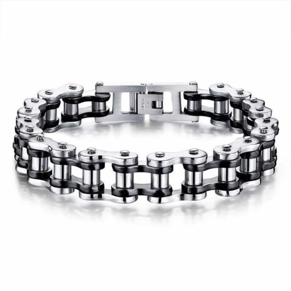 Add a vigorous touch to biker ensembles with this fierce chain bracelet. Imagined in durable stainless steel, it boasts a chunky chain design that never fails to catch the attention. It looks super cool on its own or paired with some of your favorite accessories.