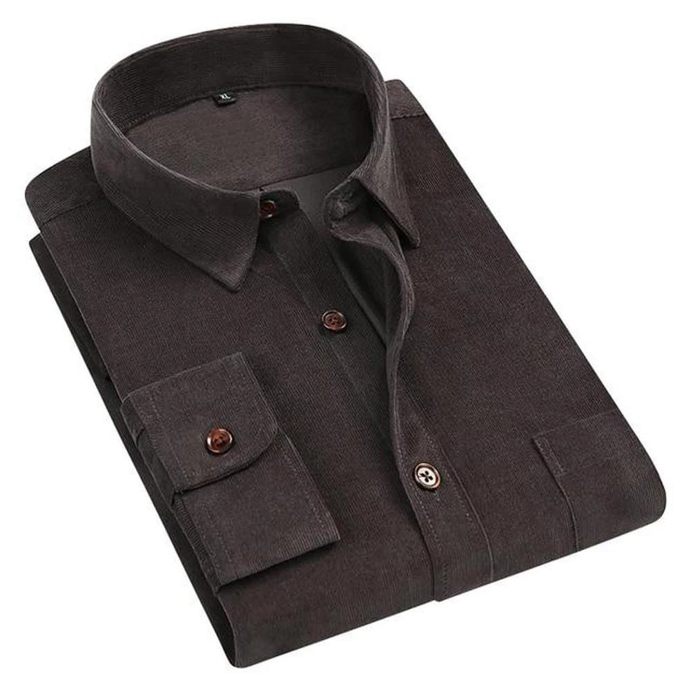 Soft corduroy fabric lends a visual texture to this handsome casual staple. Cut in a sleek fit, this refines long-sleeve silhouette boasts a button-up front and turn-down collar that layers beautifully over casual shirts or under overcoats.