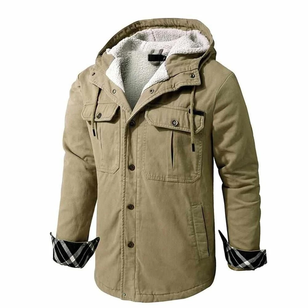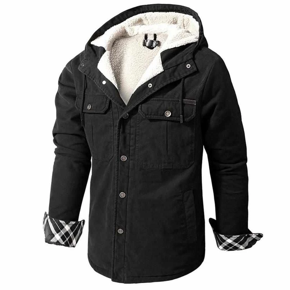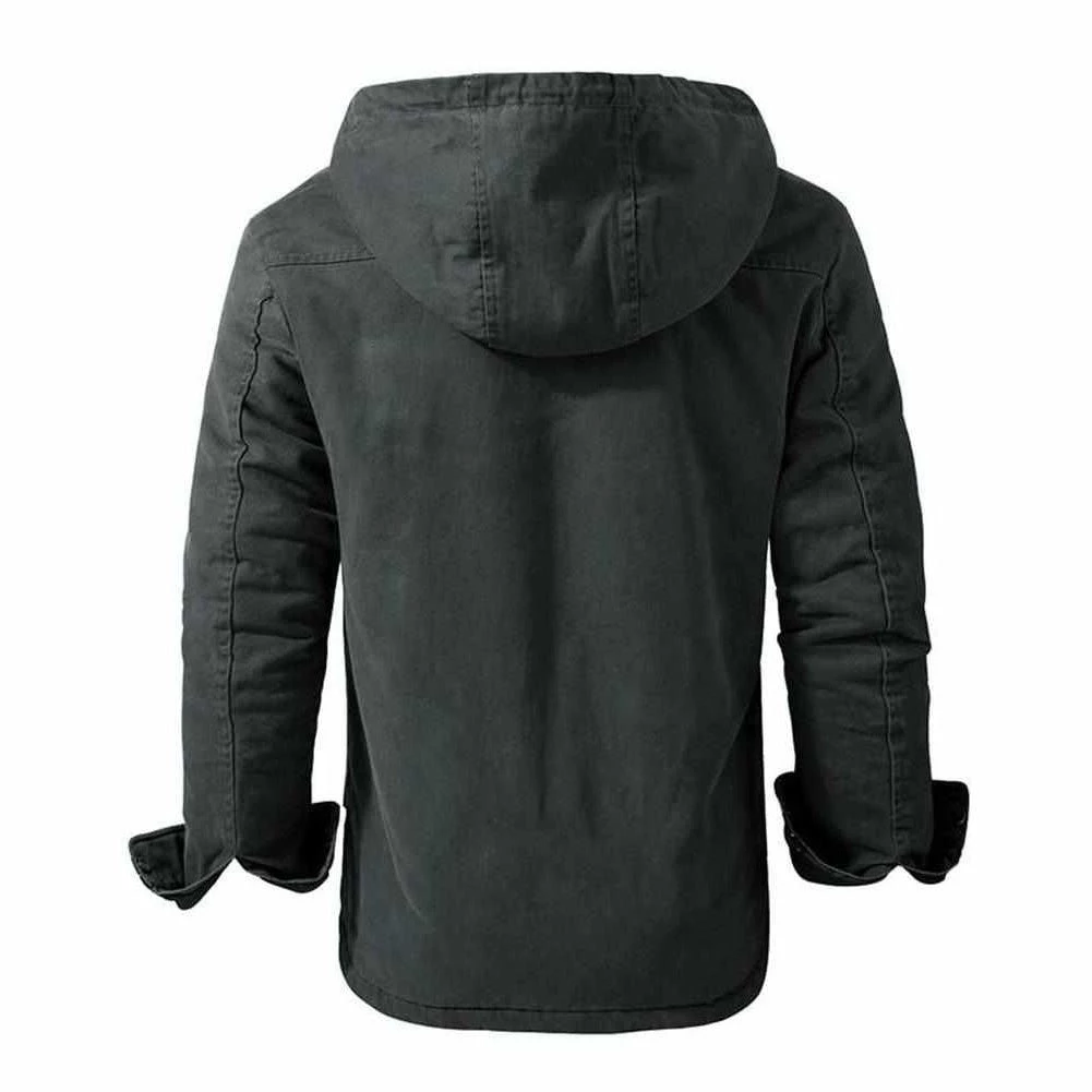 Upgraded with a proprietary blend, this jacket easily stands against the elements. The durable cotton construction pairs with a soft fleece lining to provide unrivaled warmth and comfort when the weather takes a turn. Completed with a hood and button-up front, this jacket pairs easily with your casual separates.