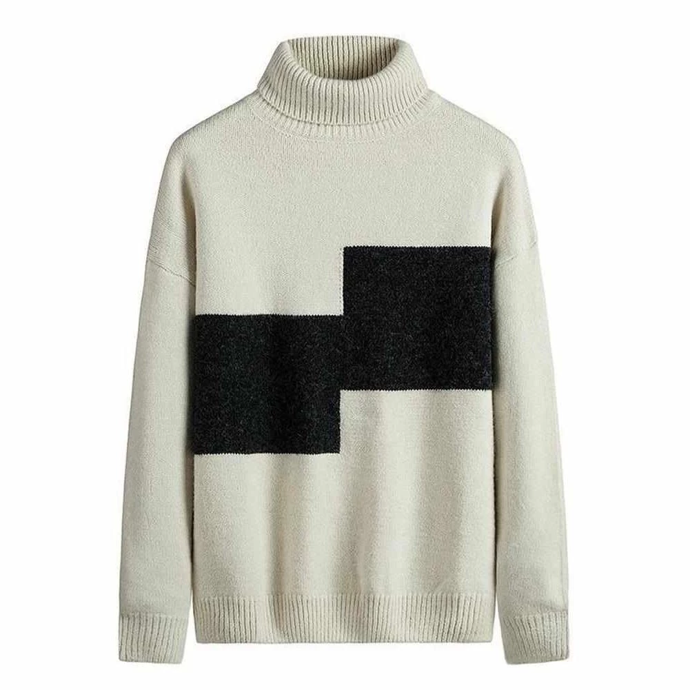 Stylish patchwork pattern elevates this handsome staple with a modern appeal. Imagined in an ultra-soft wool blend, this sweater boasts a turtleneck design that keeps you warm and cozy, without overheating. Perfect for casual weekend brunches or lounging at home.