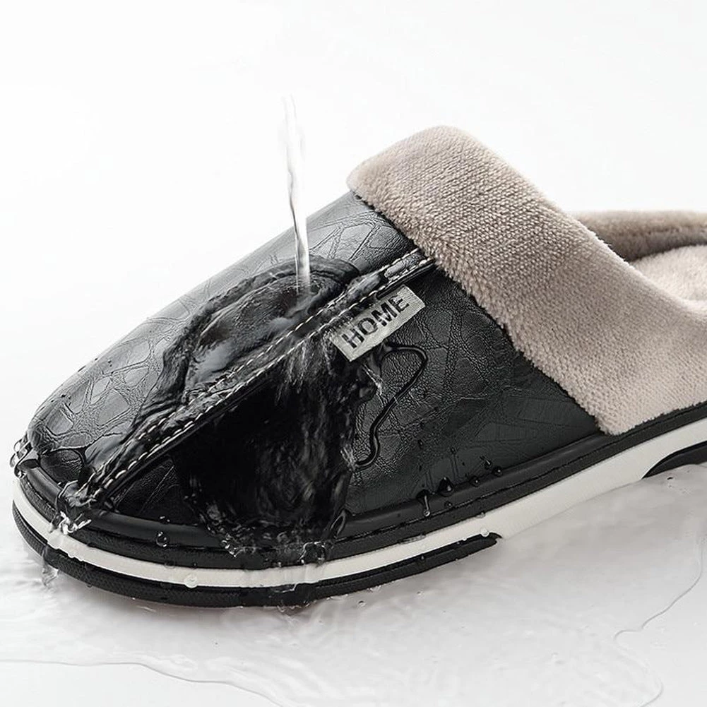 Stay warm and cozy in winter with these indoor waterproof slippers. The upper flock is reinforced with short plush inside to provide the most delightful warmth. The EVA outsoles deliver extra comfort, support and balance.Â