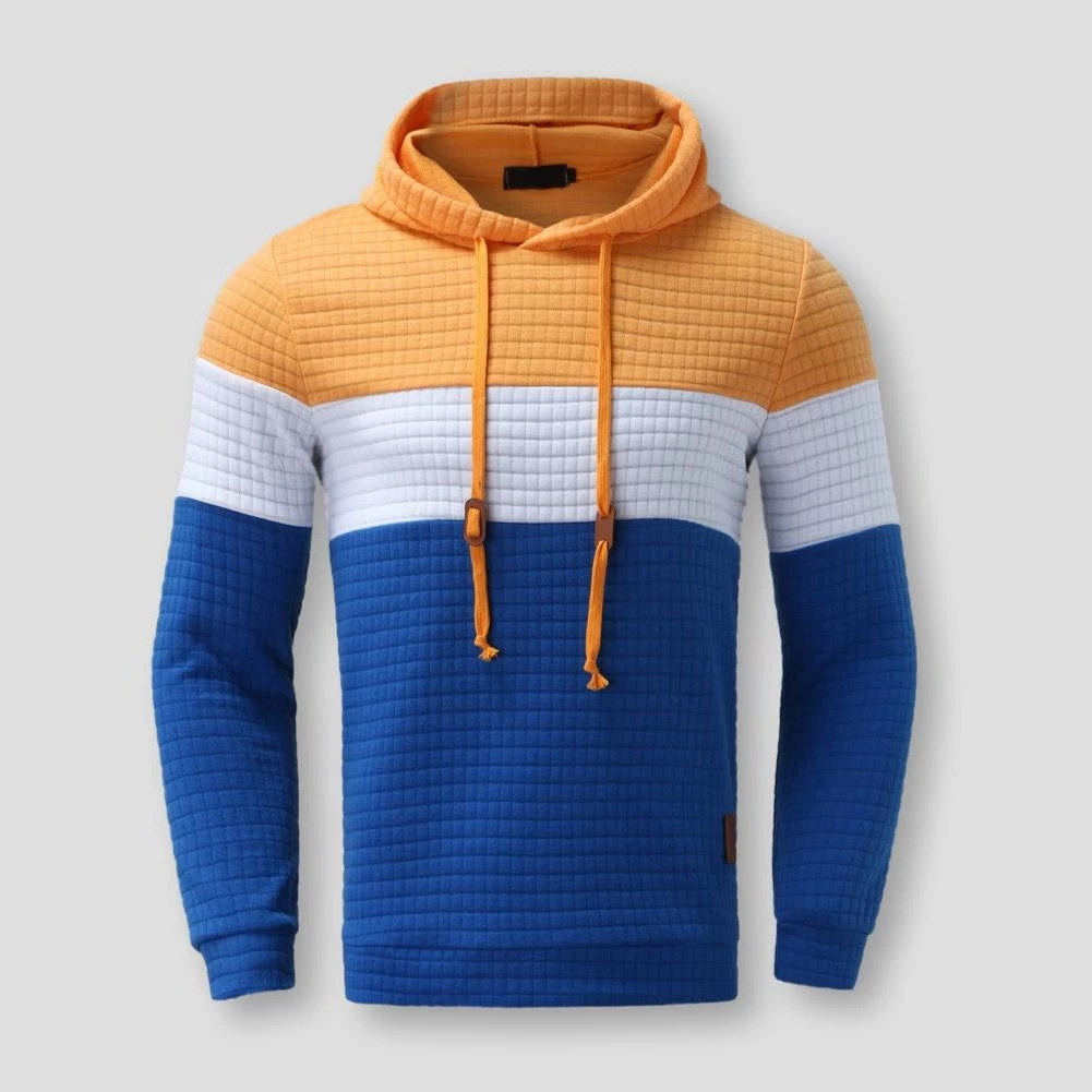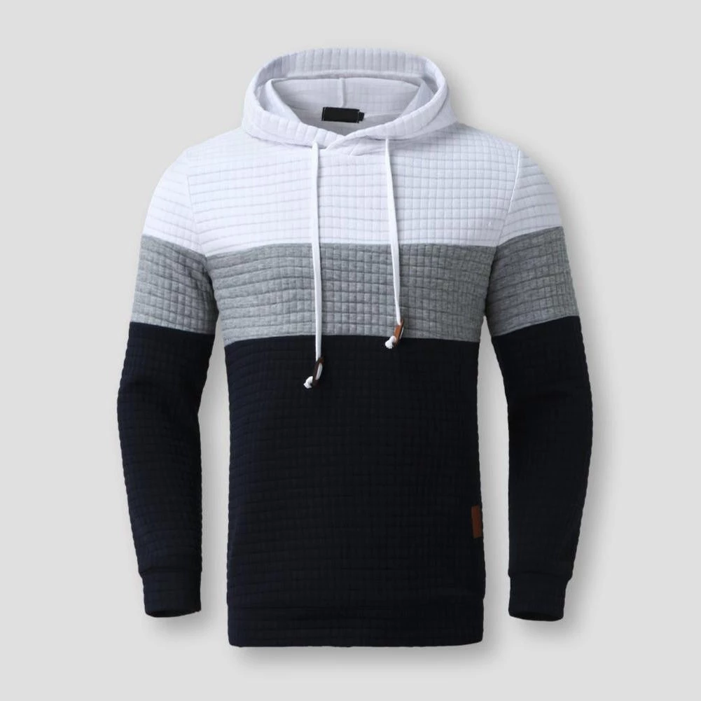 A three-color design defines this handsome street-ready sweatshirt. Imagined in soft cotton, it sports a slim fit, a hooded collar with easy-to-cinch drawcords, and ribbed cuffs for added warmth. Perfect for everyday wear, post-workout activities, or lounging at home.