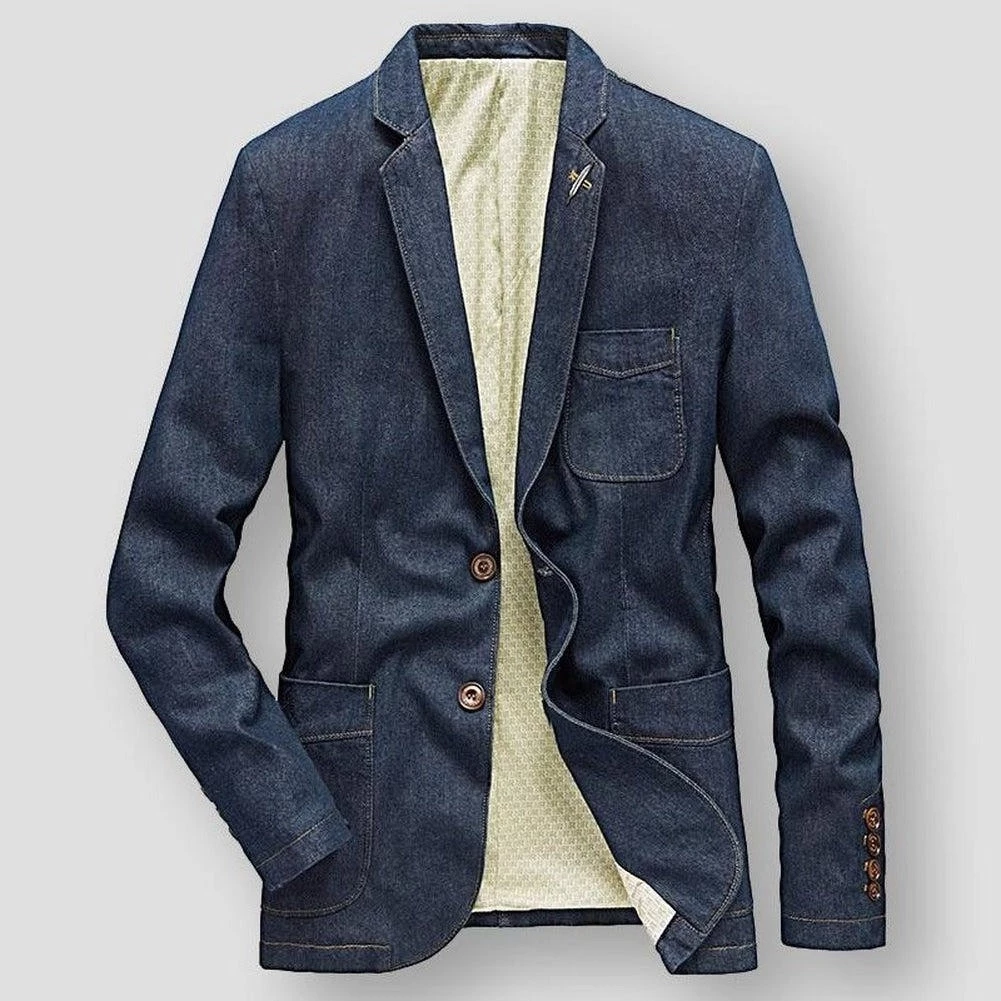 A soft structure and lightweight denim blend define this handsome blazer. Cut in a slim fit, it sports handy pockets and a two-button front that layers beautifully over casual shirts. Perfect for a casual lunch date or a weekday night out.