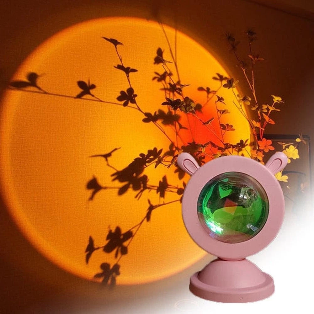 Create the magic of the golden hour at any time with this mini projector lamp. Radiating a soft light in sunset or rainbow hues, this lamp is the perfect addition to any room in the house. It sets up a great atmosphere for relaxing, studying, or meditating.