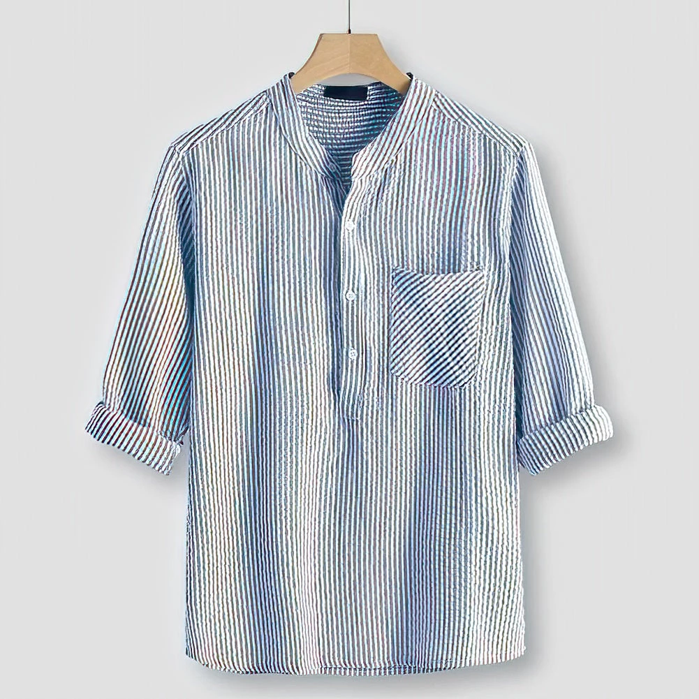A lightweight and airy linen means unbeatable comfort when temperatures rise. Cut in a relaxed fit that’s easy to layer, this shirt is patterned with subtle stripes that lend a visual texture to this timeless piece. Team up with bermuda shorts or chinos for a polished off-duty look.