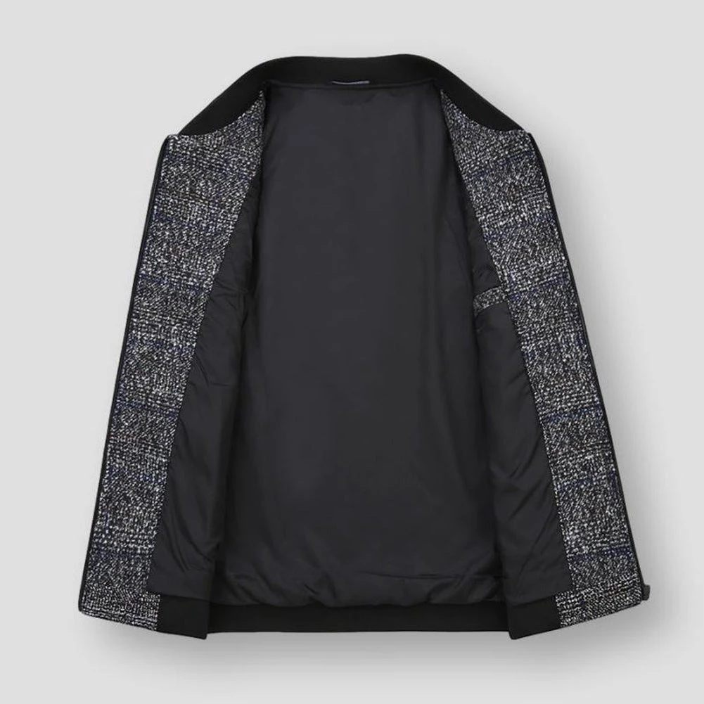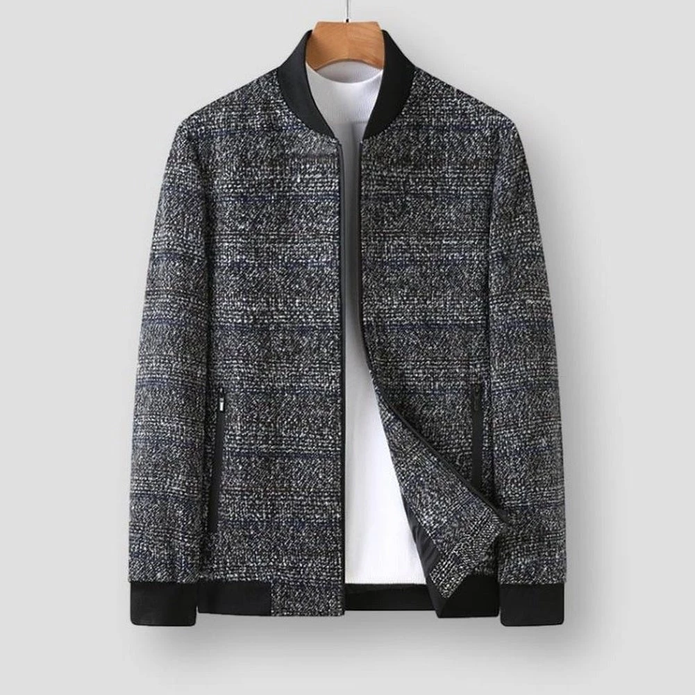 A soft wool-like blend lends visual texture to this handsome jacket. Inspired by the timeless baseball silhouette, this jacket features a zipper front and ribbed cuff sleeves, a design that pairs well with denim jeans or casual corduroy pants.