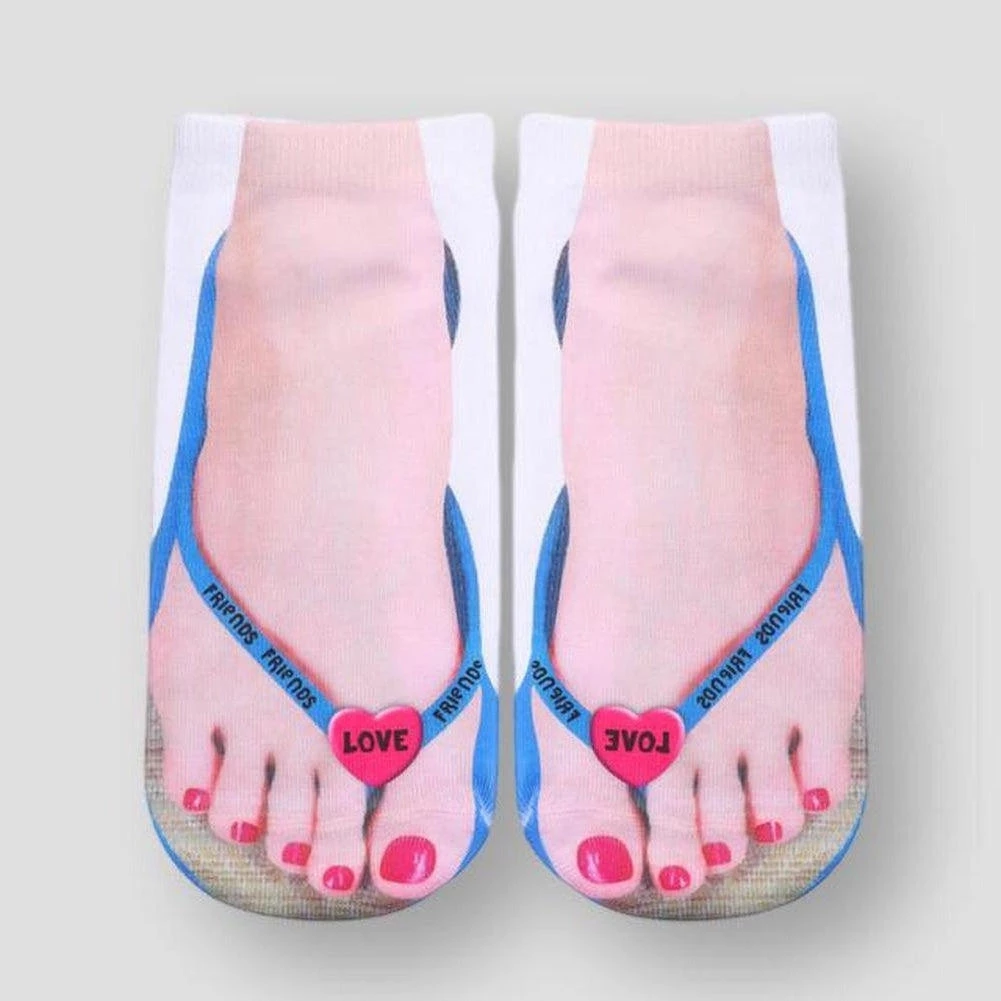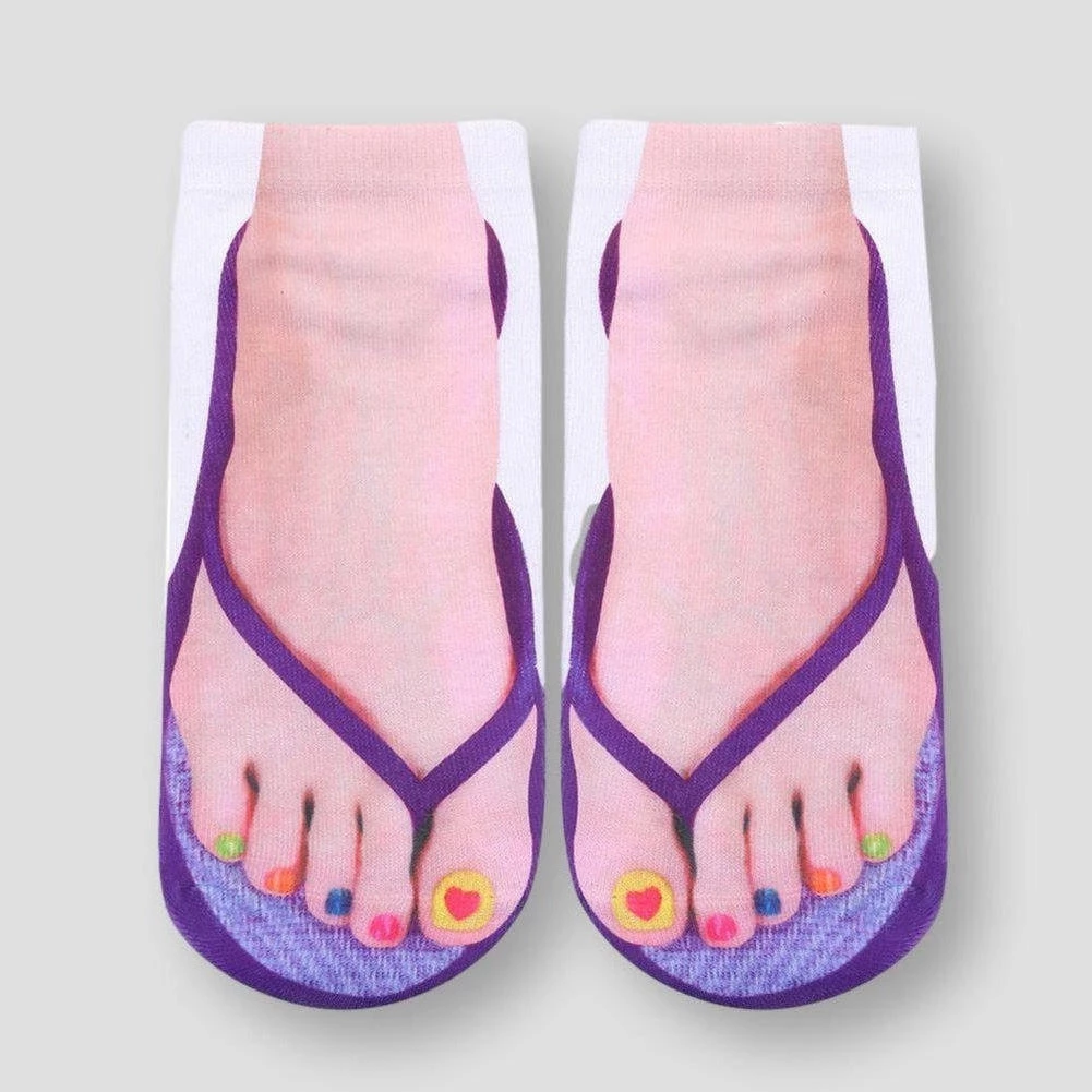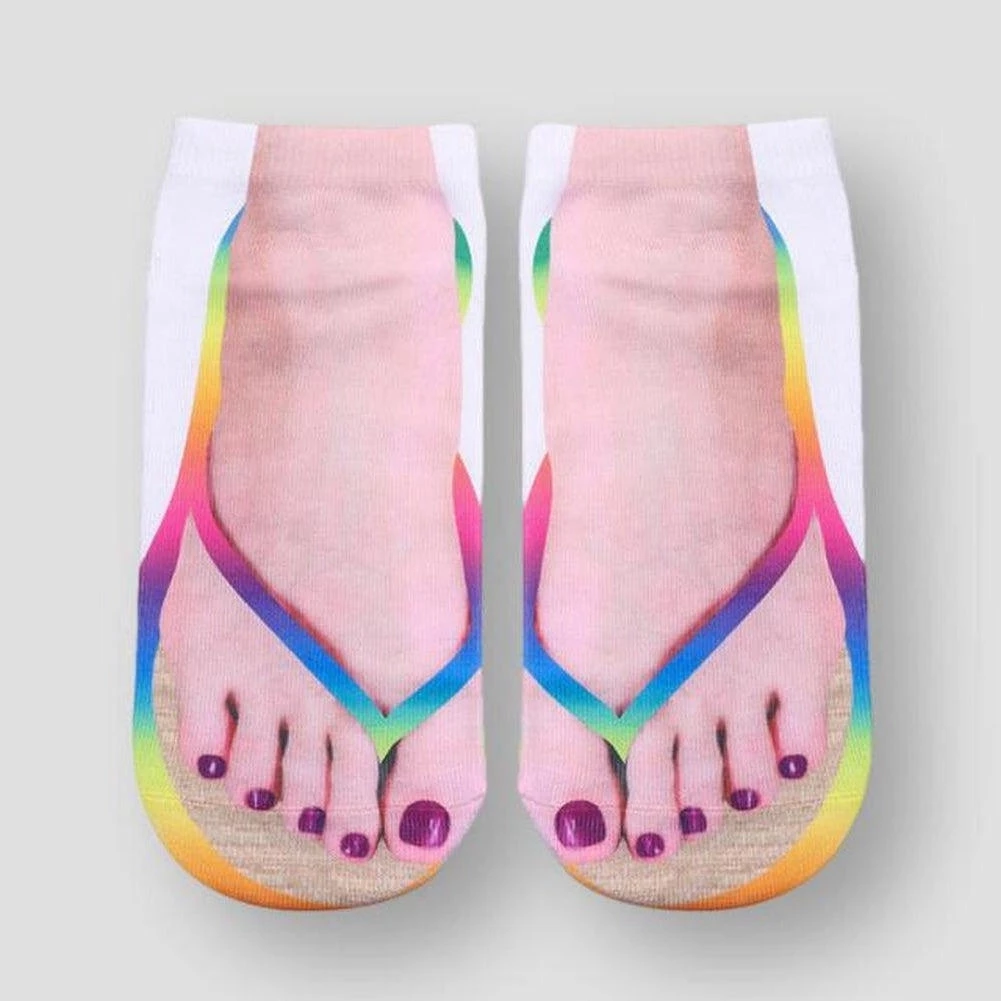 Add a summer vibe to the cold winter days with these unique socks. Made from a soft, cozy blend, this pair boasts a colorful flip-flop print and makes any at-home ensemble look much cooler.Â