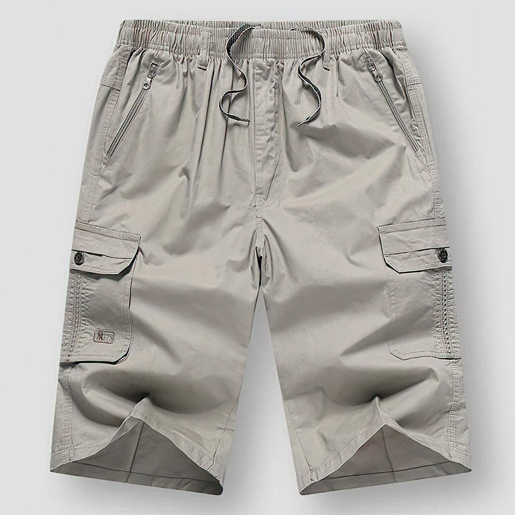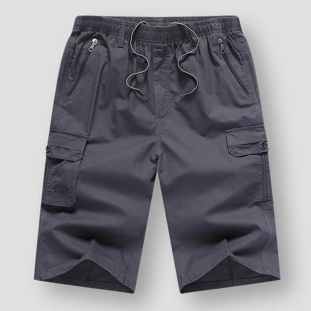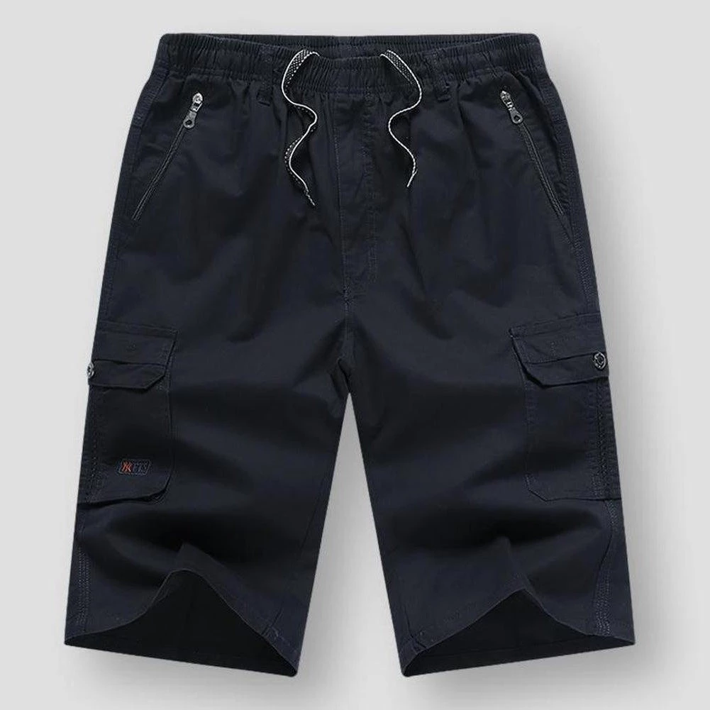 Nothing says action-ready quite like these handsome cargo shorts. Imagined in soft cotton for excellent breathability, this pair sports an elastic waist for a custom fit and handy pockets that store your small essentials close at hand.