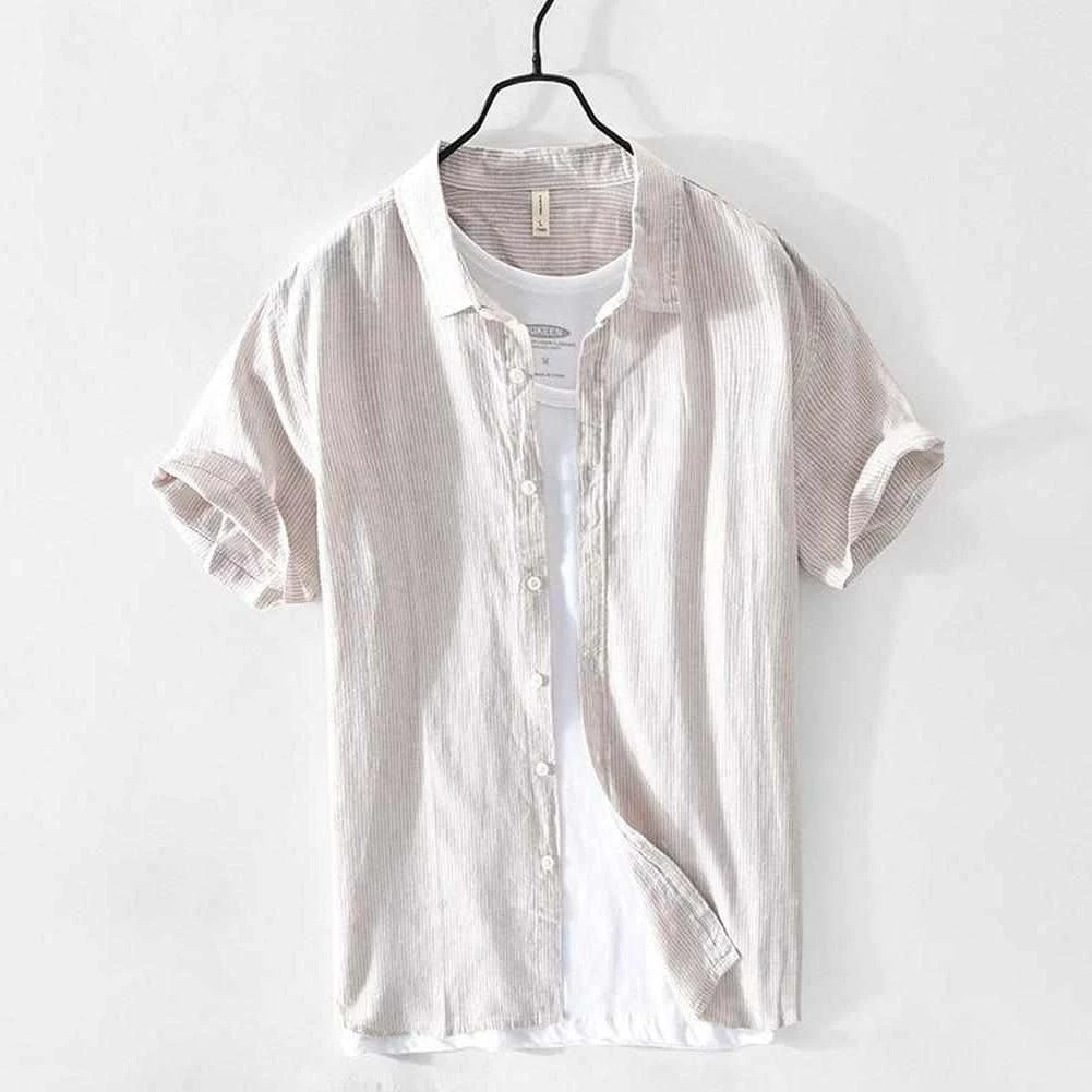 For a casual-cool dress code, look no further than this Saint Morris Striped Button-Up Linen Shirt. The luxurious cotton-linen blend makes this shirt an absolute pleasure during warm, summer days, while the subtle striped pattern adds a bit of dimension to sunshine-casual ensembles.