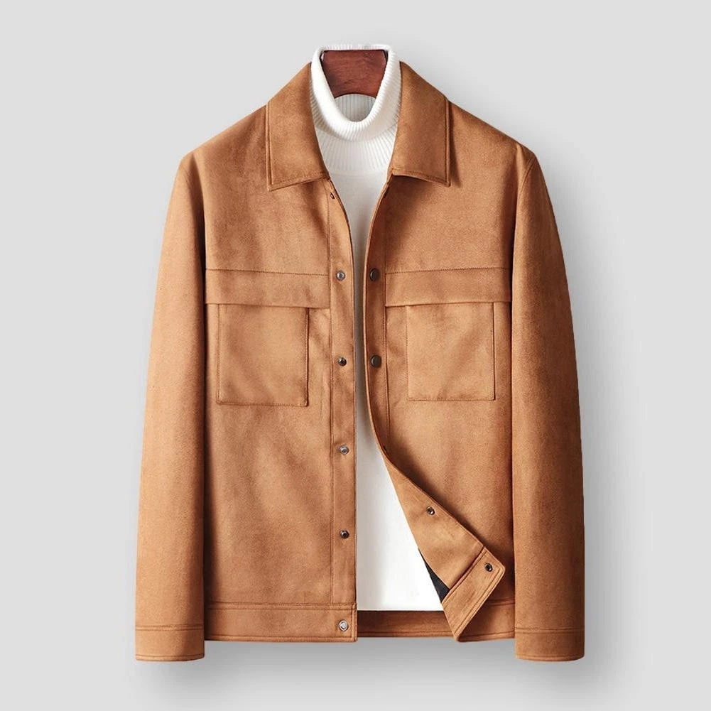 Luxuriously soft suede lends an elevated look and feel to this handsome jacket. Cut in a regular fit, it boasts a button front and two chest pockets that store your sunglasses in style. Team up with denim jeans and a casual shirt for a handsome off-duty edit.