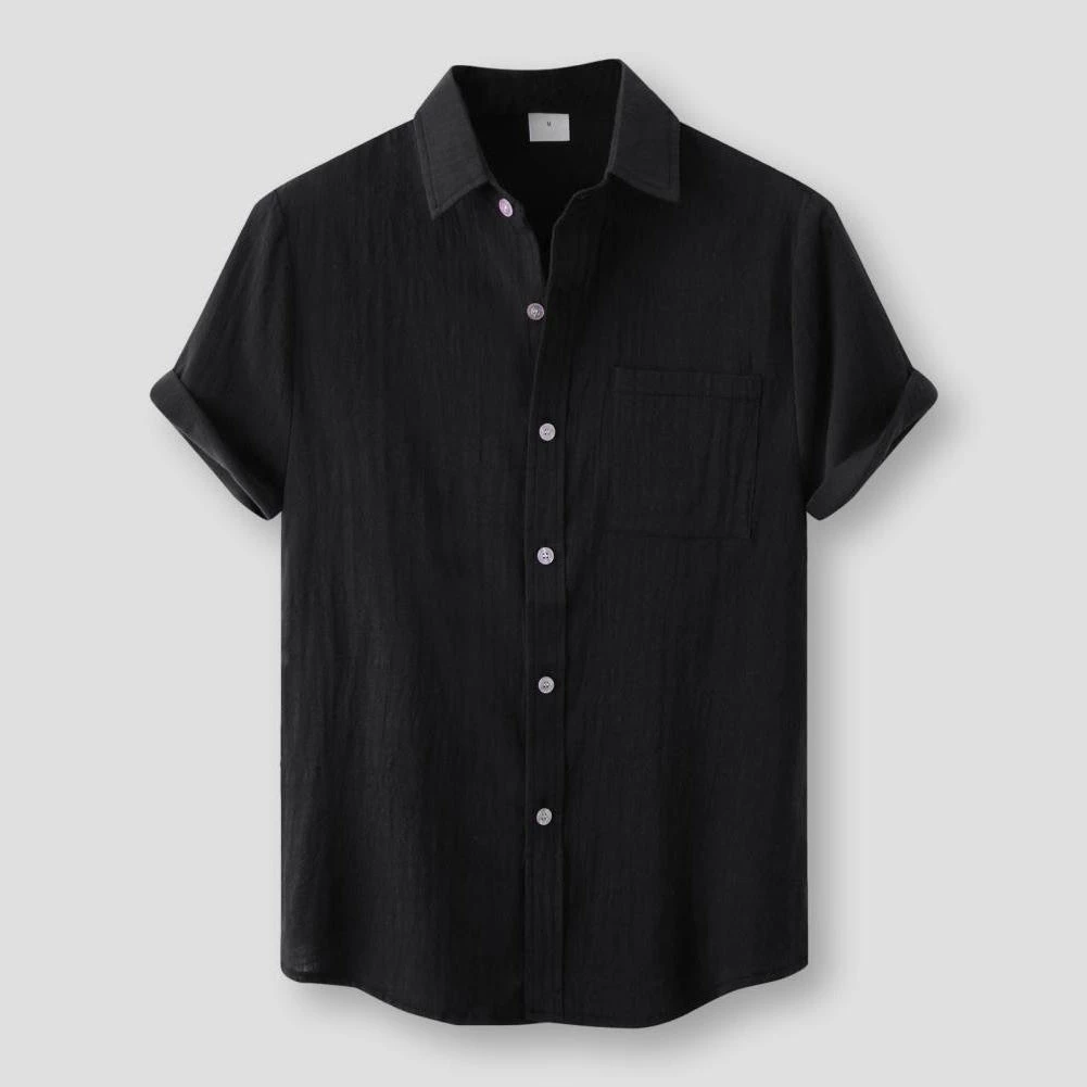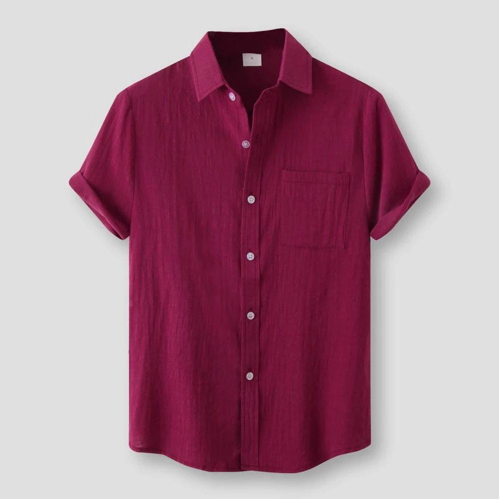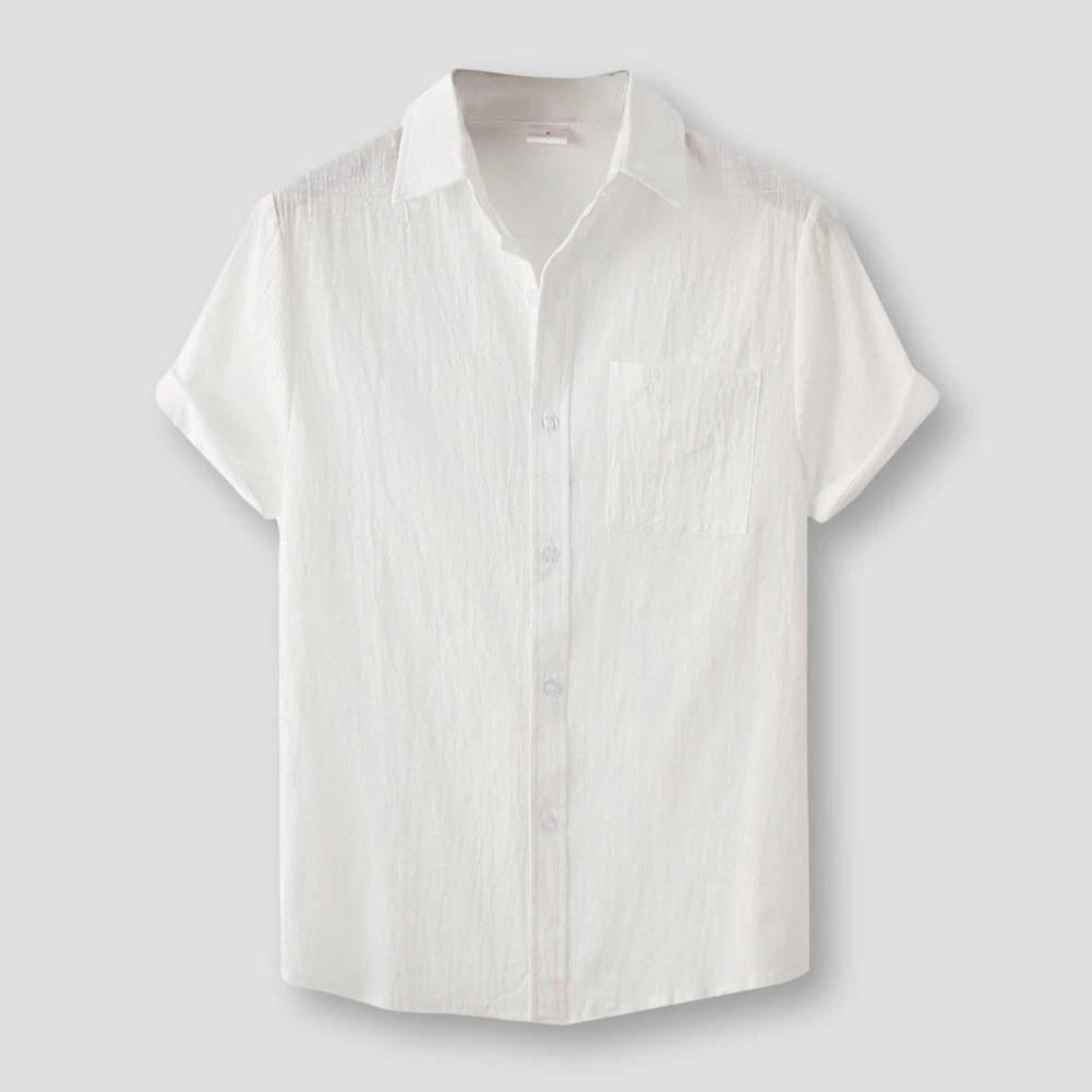 Stay fresh and cool when temperatures rise with this dashing summer shirt. Cut in a relaxed fit from a cotton-linen blend, it sports a button front and a chest pocket that stores your sunglasses in style. Perfect for poolside lounging or strolling around town.