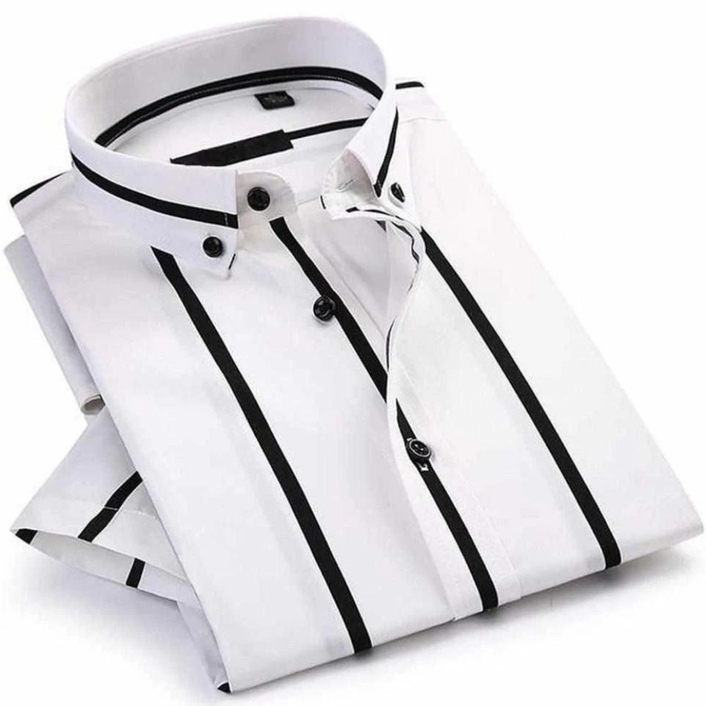 A charismatic companion to smart-casual ensembles. Imagined in a luxuriously soft, stretch-infused cotton, this refined short-sleeve shirt boasts timeless details such as a turn-down collar and button fastening, blended with a modern striped pattern that adds a stylish statement to your casual separates.