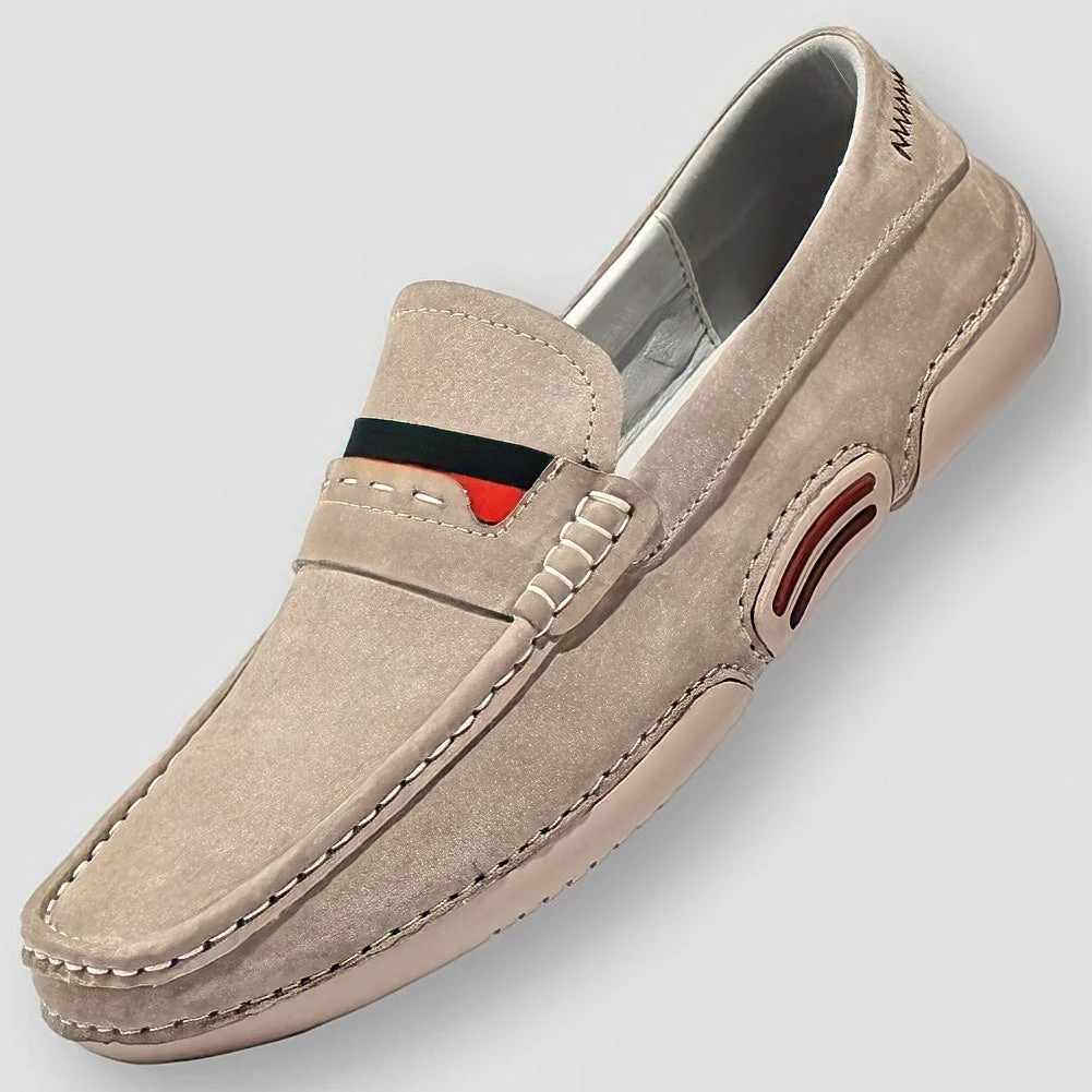 Perfect for driving, strolling, and everything in between, these shoes are a timeless wardrobe staple. Imagined in luxuriously soft suede, the sleek silhouette is complete with rubber soles for extra firm grip and superior comfort.