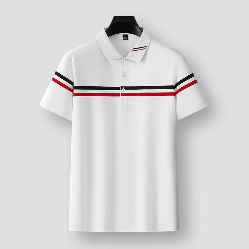 Soft and breathable cotton lends easy comfort both on and off the court. Cut in a relaxed fit, this polo shirt boasts a simple solid-color design with subtle stripes across the chest and pairs easily with your favorite pair of jeans or casual shorts.