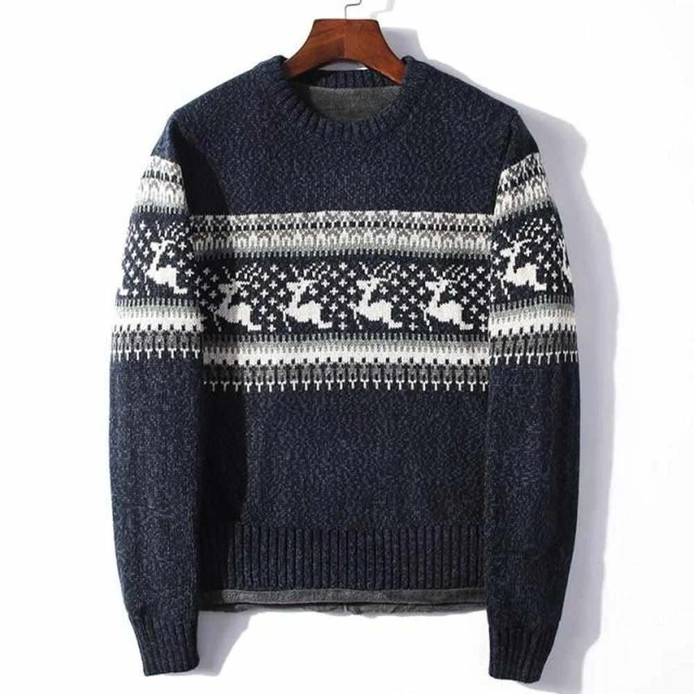 Revel in superior warmth and comfort with this Saint Morris Iceland Knitted Sweater. Imagined in a luxuriously soft cotton-wool blend, this piece boasts winter-inspired motifs and a standard fit that layers beautifully over denim jeans or casual pants.Â
