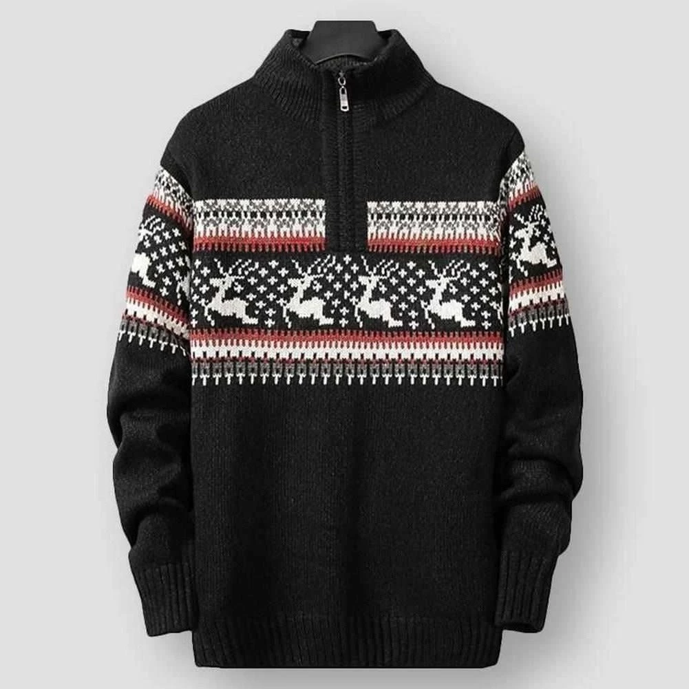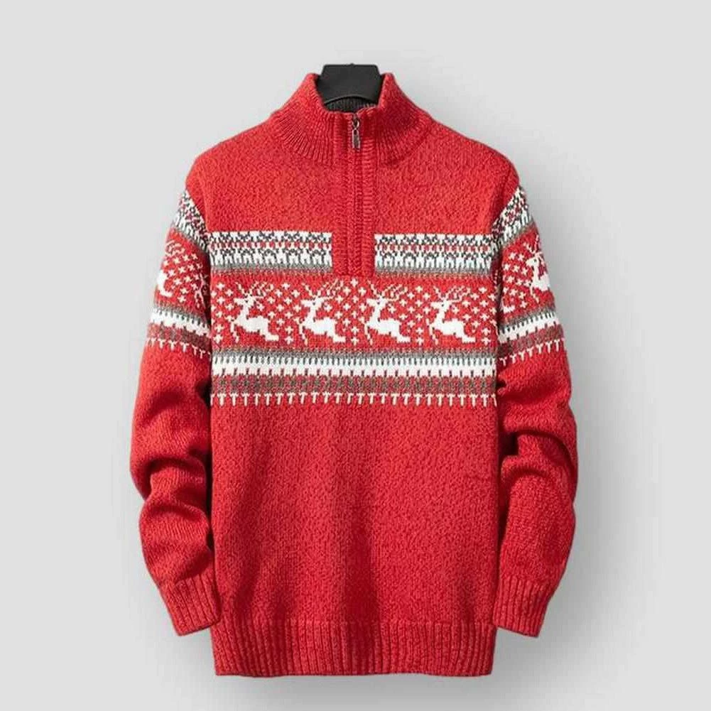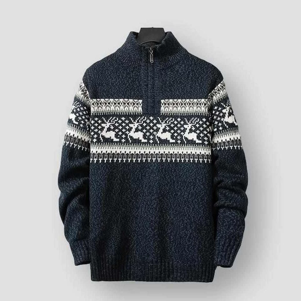 Soft wool blend makes this pullover a cold-weather must-have. Designed with comfort in mind, it boasts a relaxed turtleneck silhouette with a zip-up collar. Adorned with winter-inspired detailing, it’s a charming companion to casual ensembles.Â