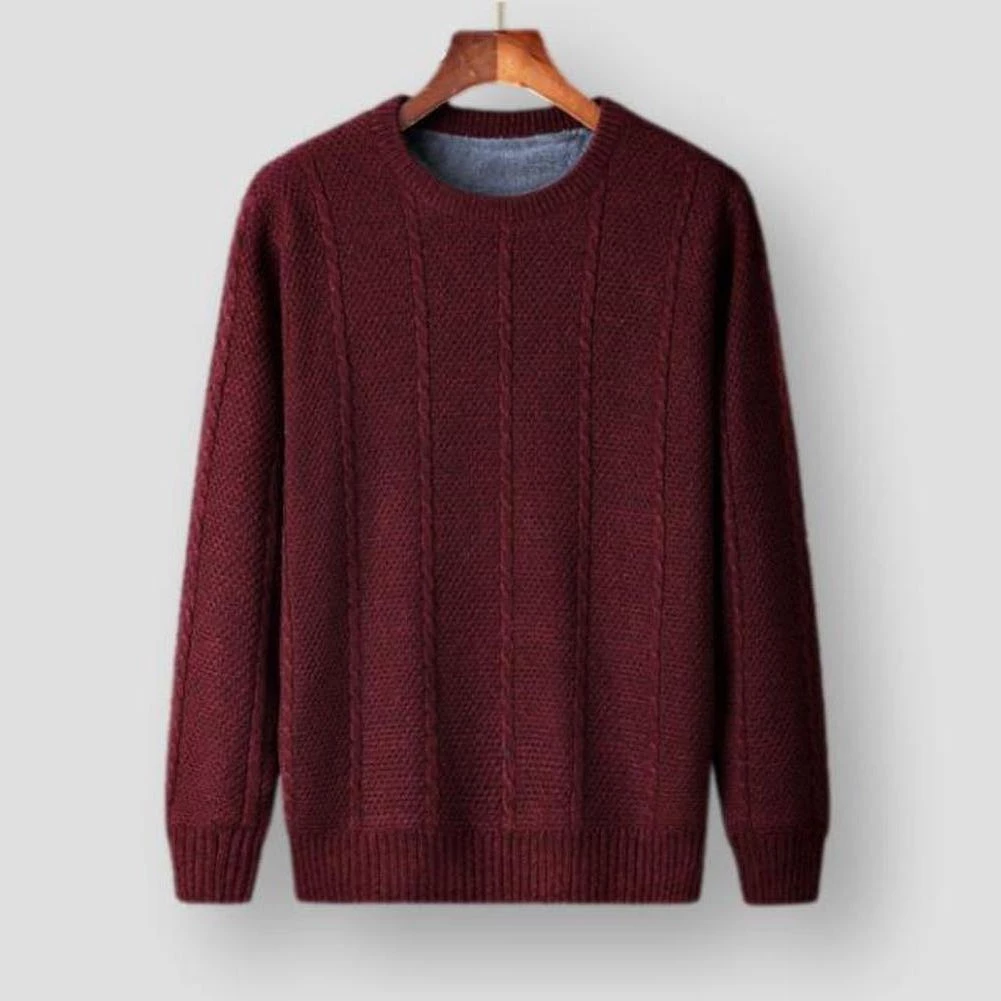 Get cozy when temperatures drop with this timelessly elegant knitted pullover. The relaxed fit is lined with fleece to keep you warm and comfy on cooler days while lending a classic vibe to your off-duty separates.
