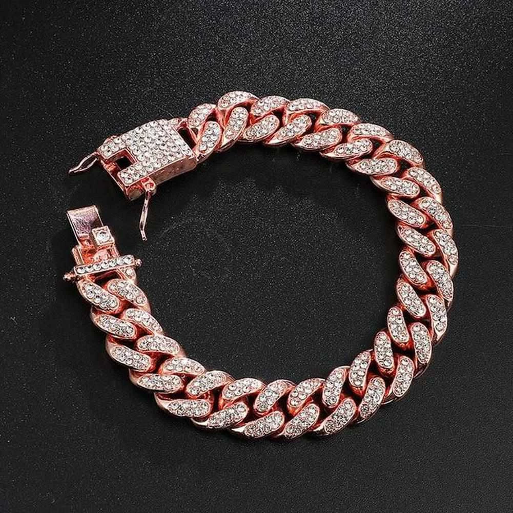 Masterfully crafted to elevate both casual and smart outfits. Imagined in premium zinc alloy, this bracelet boasts the on-trend chunky chain design, adorned with dazzling rhinestones for a blinging finish.Â