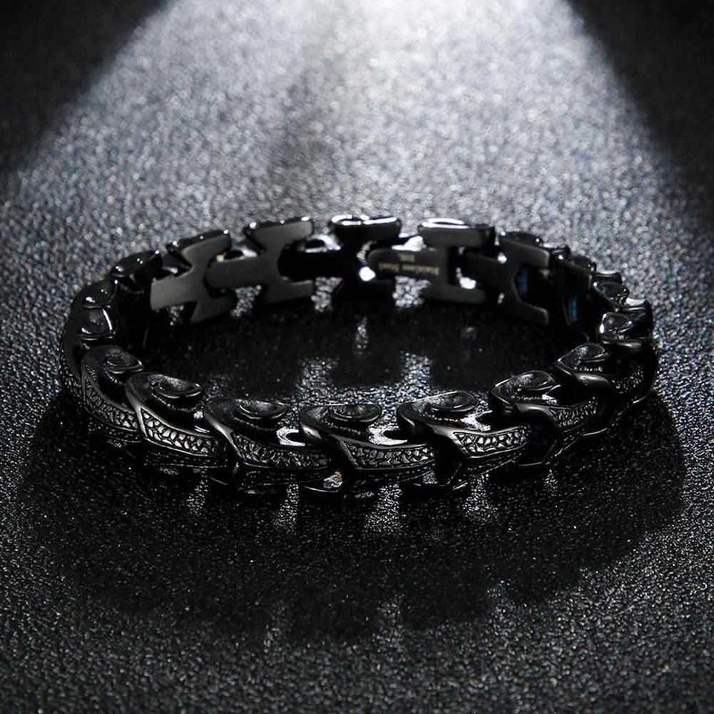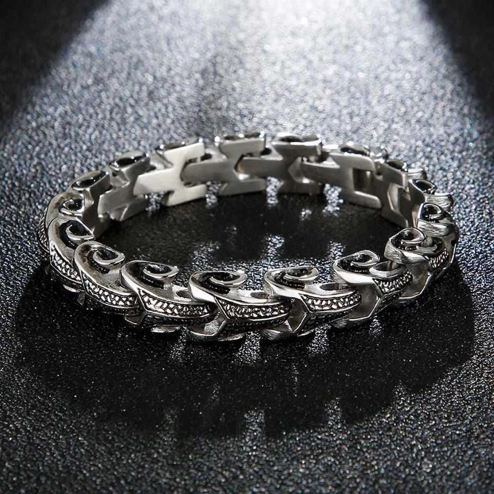 Add a fierce touch to any casual ensemble with this Sky Madrid Stainless Steel Dragon Bracelet. Featuring a chunky chain design with a dragon head, this bracelet is just as unique and outstanding as you are. It looks perfect on its own as well as paired with other bracelets or a watch.