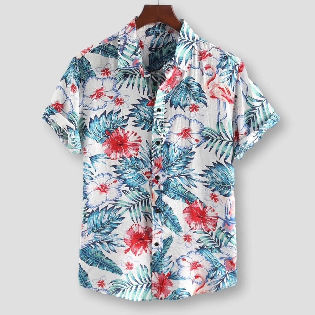 The vibrant floral print of this gorgeous shirt invites cool breezes and sun-kissed days. Cut in a relaxed fit from pure cotton, it delivers unbeatable comfort on the beach or the city streets. Team up with linen shorts for an elegant summer look.