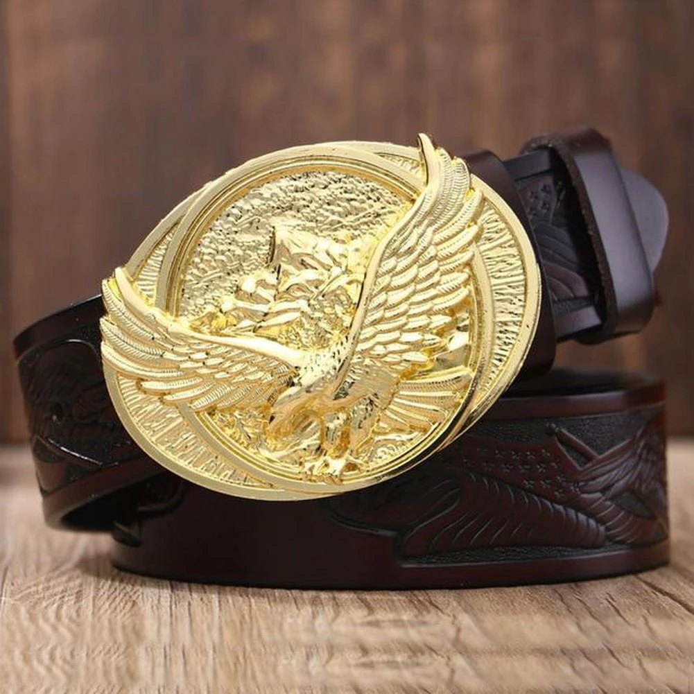 Finely sculpted and intricately designed belt buckle. This flying eagle belt buckle set elevate any wardrobe.Â