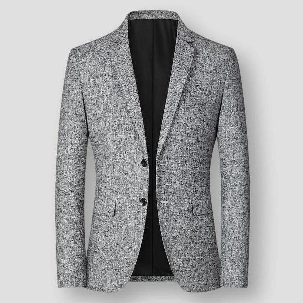 A dashing addition for seamless work-to-weekend transition. Imagined in a luxuriously soft blend, this slim-fitting blazer boasts a lapel collar and two-button front. Team up with tailored pants and a cashmere turtleneck for a handsome edit.