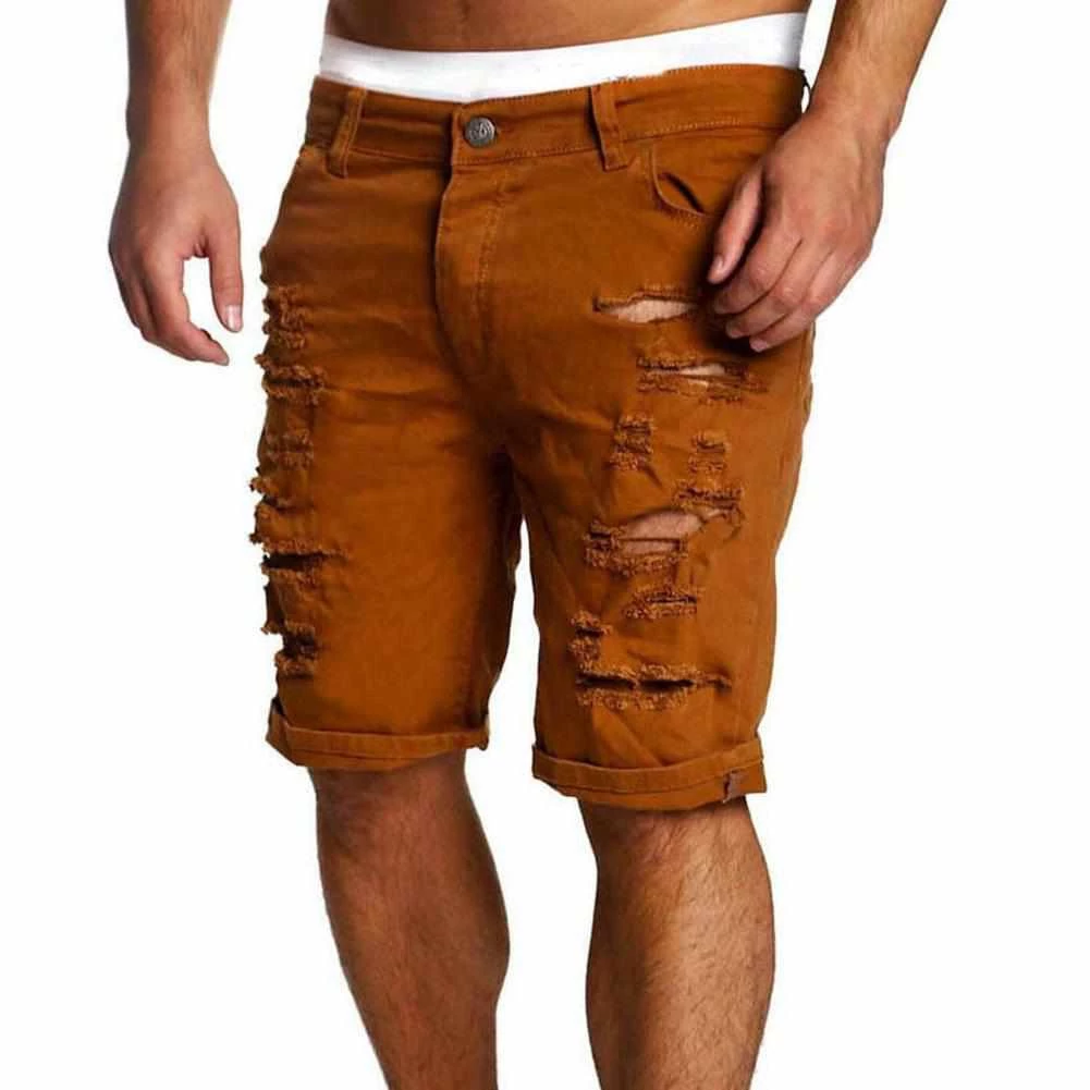 These stylish denim shorts are the perfect addition to warm-season styling. Crafted from a premium blend, this pair boasts a slim fit, accented with decorative pockets, zip fastening, and distressed details. Style it with a casual tee and espadrilles for an effortless summer edit.Â