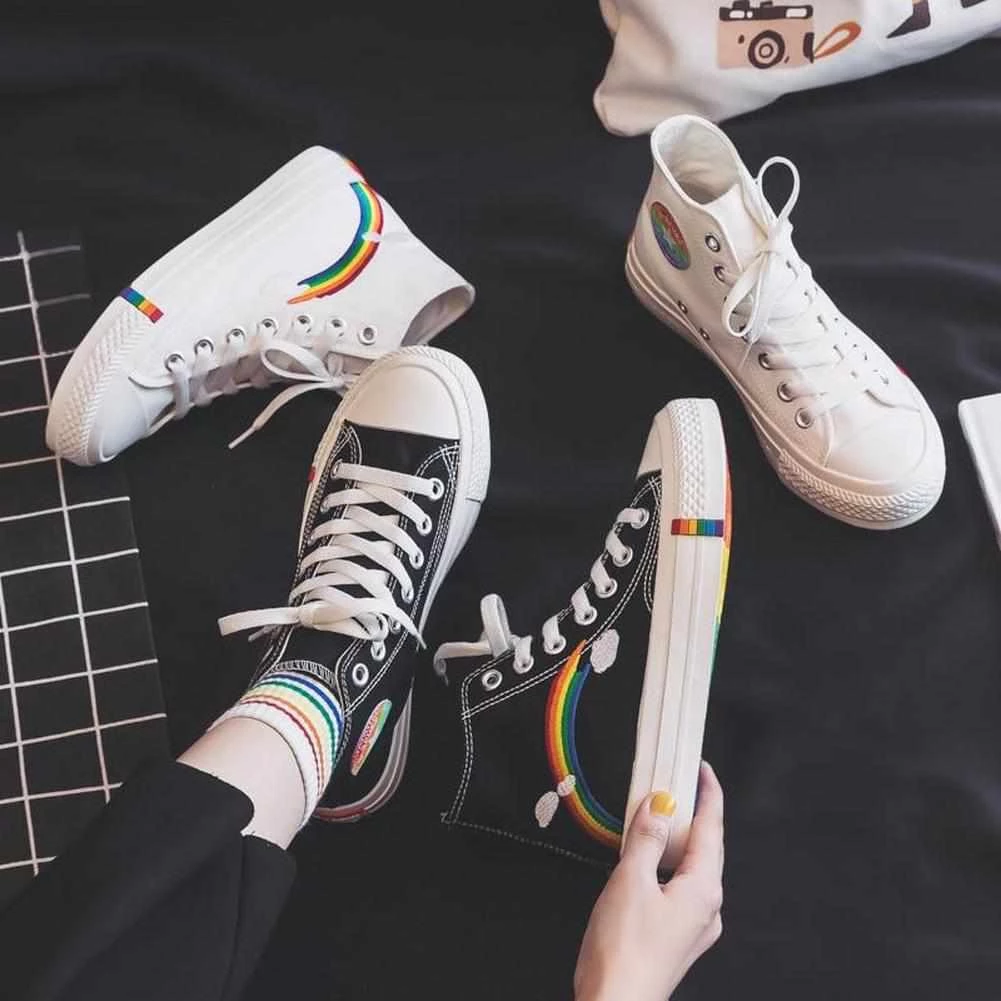 Let the bold personality shine through with the Sky Madrid Vulcanized Rainbow Sneaker. The classic canvas silhouette is placed on a higher, vulcanized sole, and decorated with rainbow embroidery, creating a pair that will make you stand out from the crowd wherever you go.