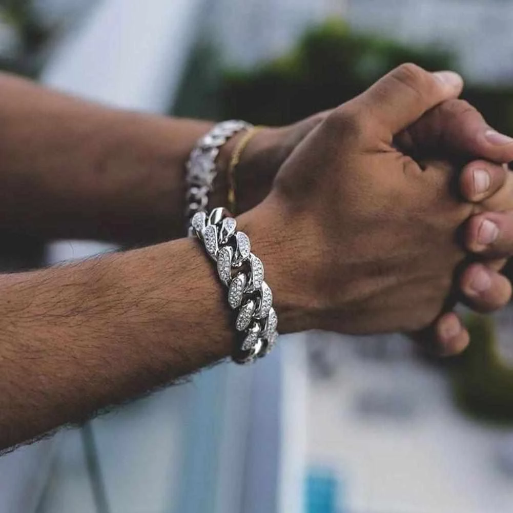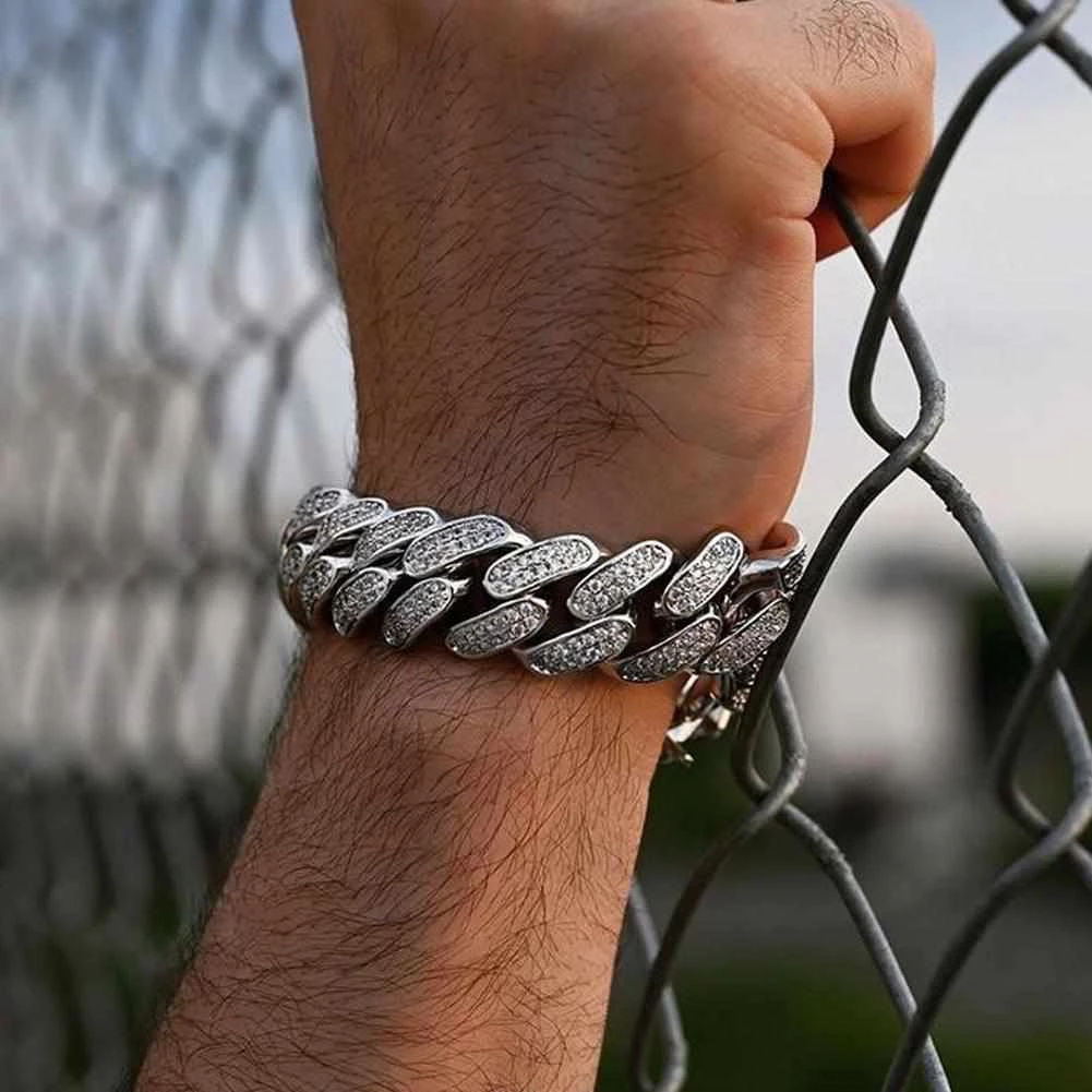 Step up the wrist game with our iconic Cuban Link Chain Bracelet. Flooded with simulated crystals, it’s as blingy as it gets. The chunky chain design is finished with a toggle-clasp and pairs easily with streetstyle separates.