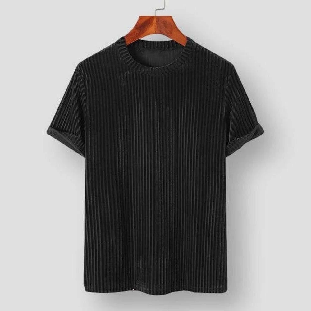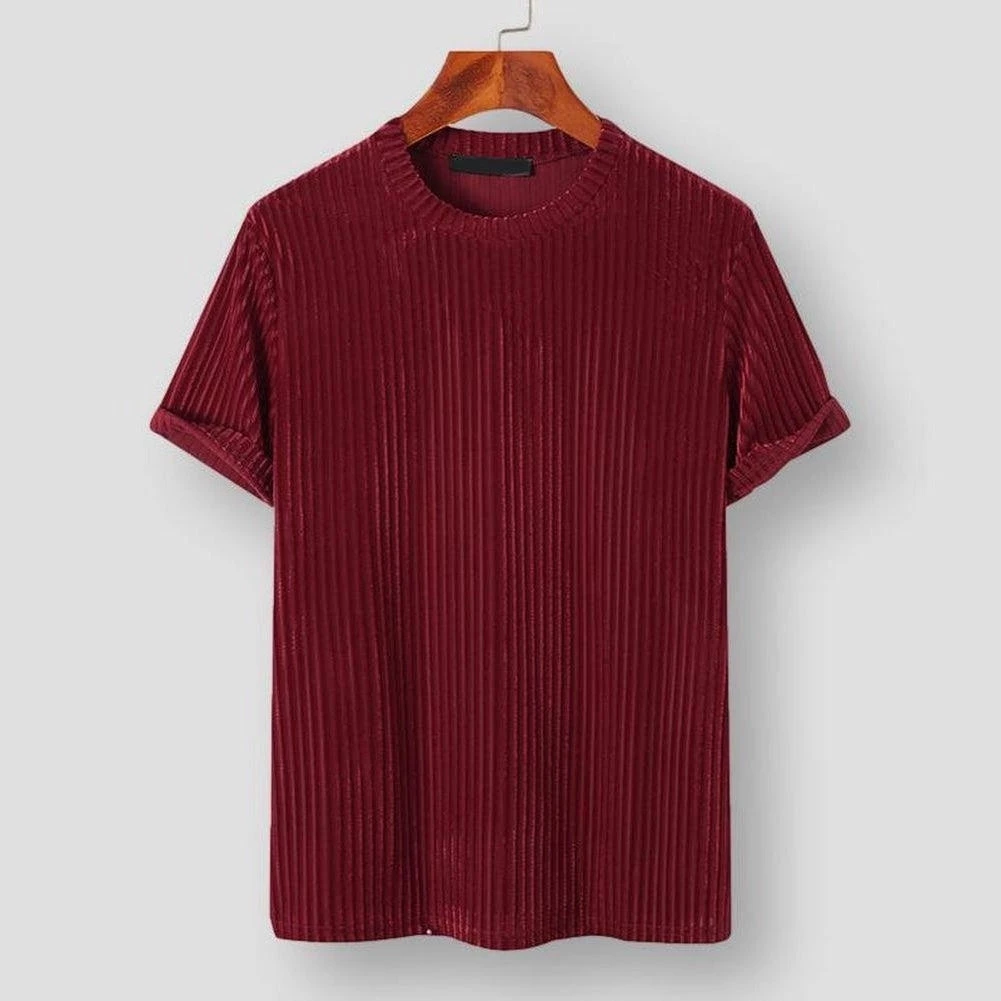 A soft, velour-like finish lends a visual texture to this handsome t-shirt. Cut in a relaxed fit, it displays a solid-color design that pairs easily with your favorite pair of jeans or casual pants. Perfect for an elevated off-duty ensemble.