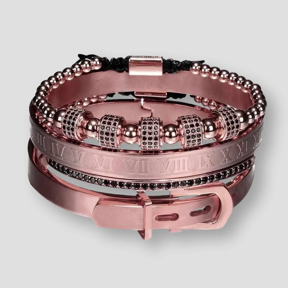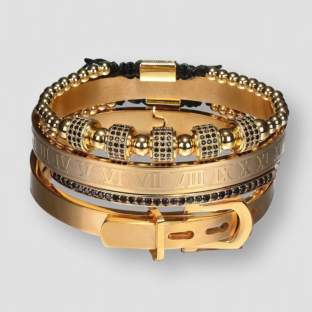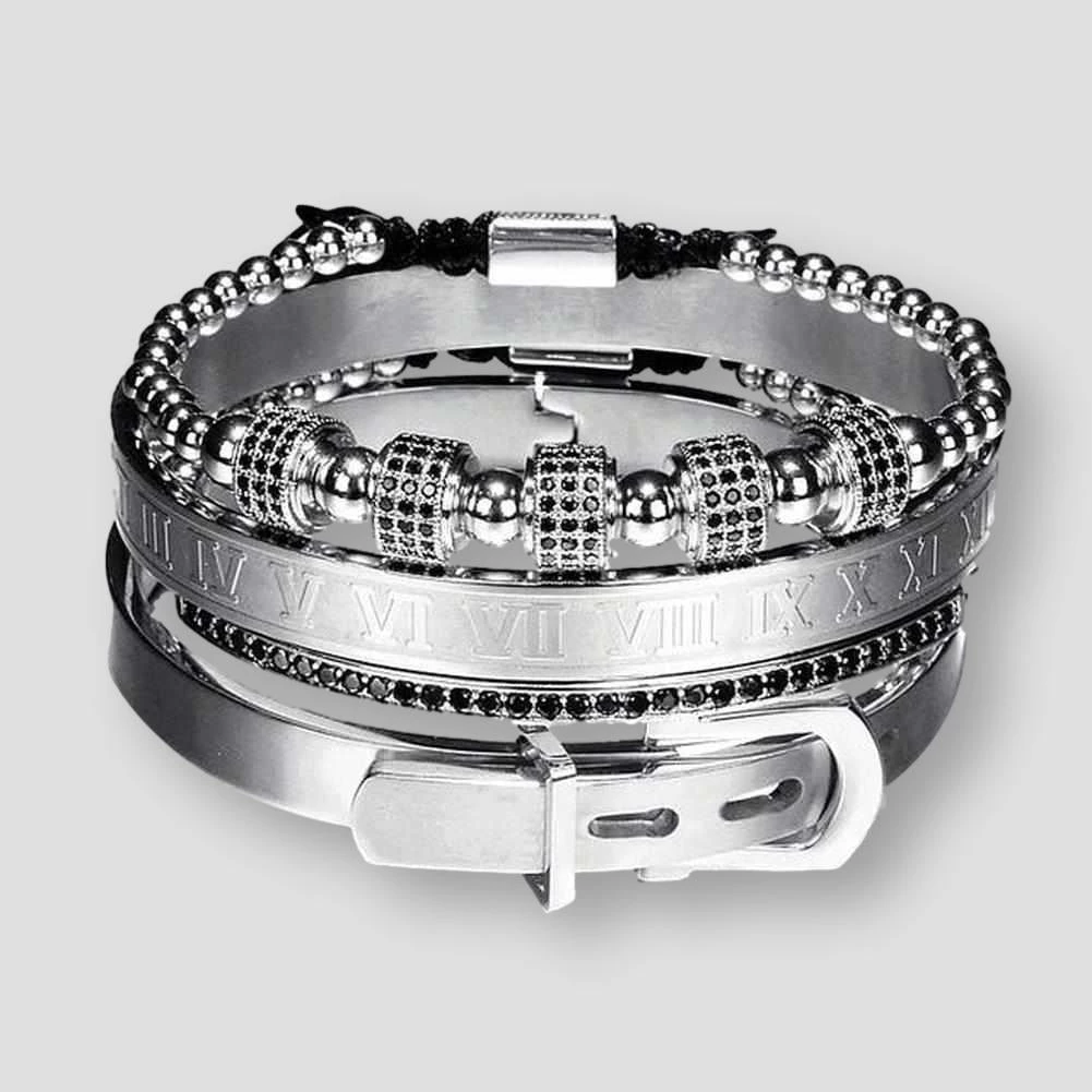 Master craftsmanship meets effortless sophistication in this North Royal Stainless Steel Numeral Bracelet Set. Fine stainless steel shapes this set of 4 bracelets, each featuring distinctive and remarkable detailing. A chic design that instantly elevates any casual or formal ensemble.