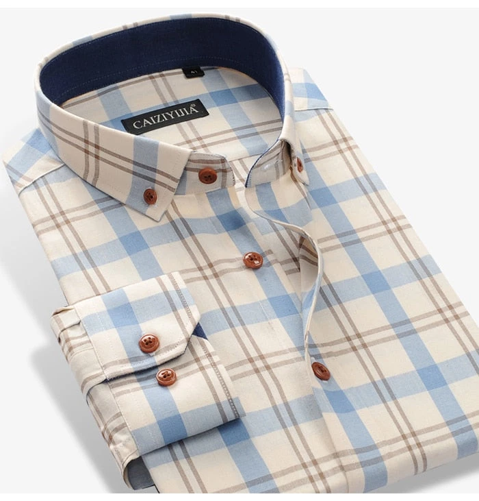 A handsome addition to the off-duty wardrobe, this shirt transitions easily between the seasons. Crafted from breathable cotton, it boasts a turn-down collar and plaid pattern, pairing well with denim jeans for a casual weekend look.