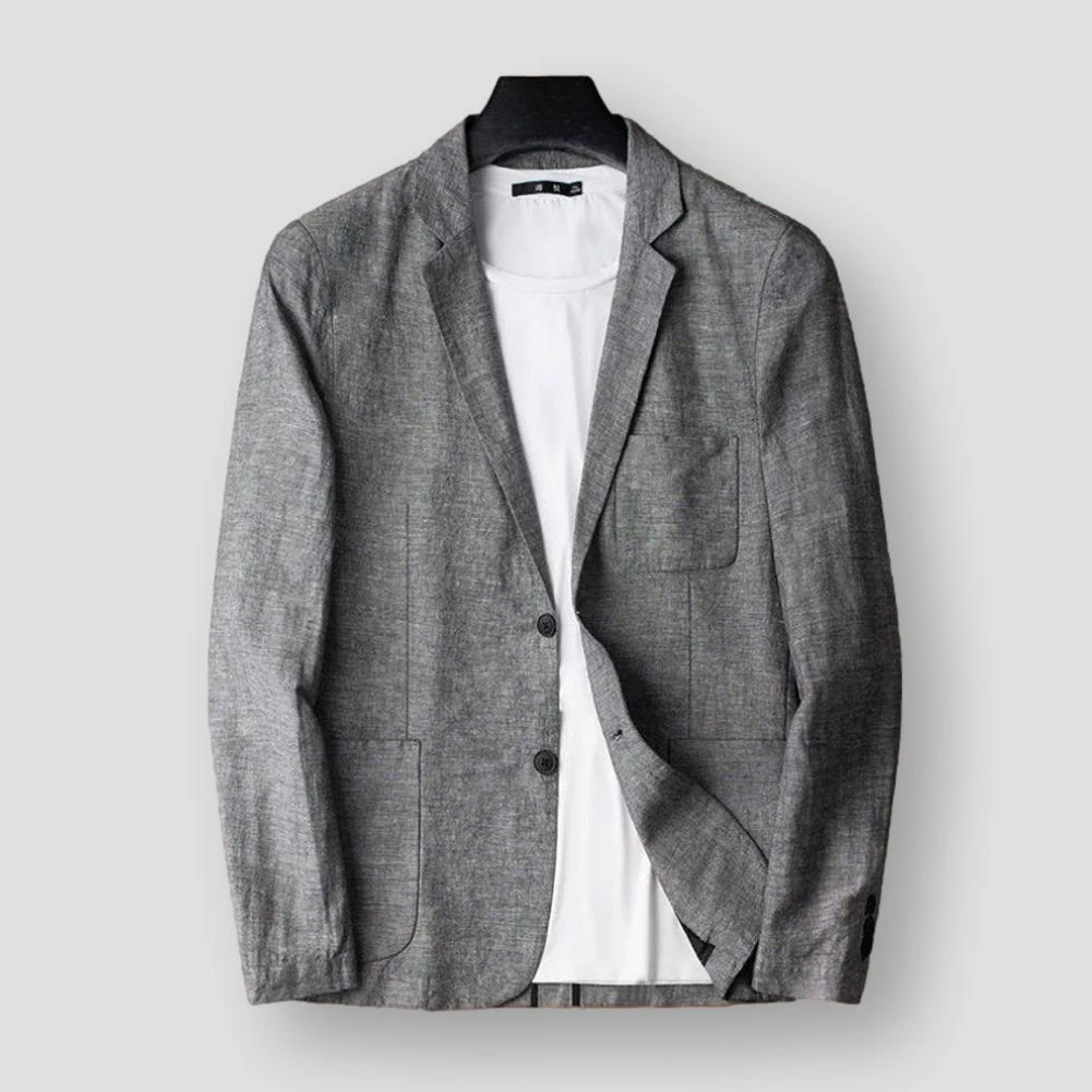 Crisp linen lends effortless elegance to the urban gentleman. Cut in a structured, yet relaxed fit, this charming blazer boasts a button front and instantly elevates any casual ensemble. Team up with linen pants for a polished summer look.
