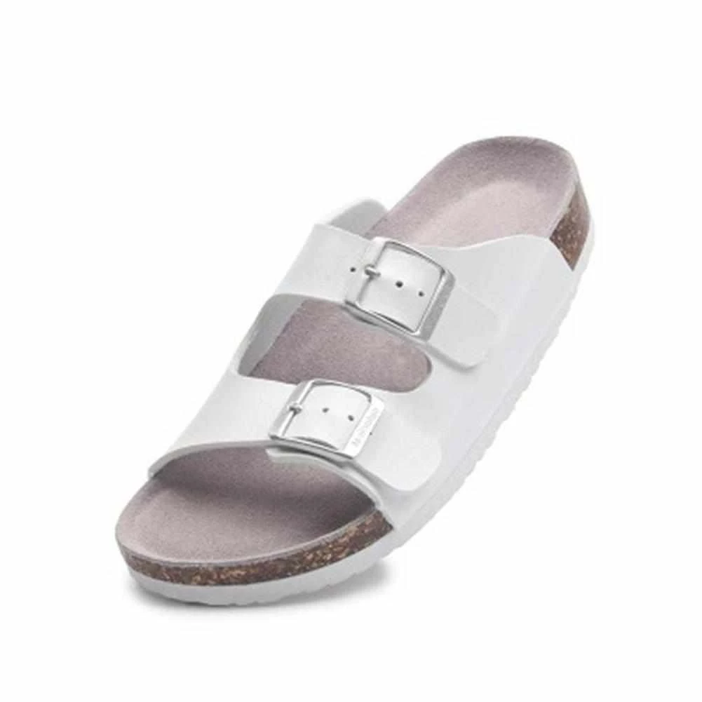 Beautifully crafted to add effortless elegance to any summer edit. Imagined in premium crafted leather, this stylish pair boasts a wide double-strap, slip on profile finished in a vibrant palette. The soft cushioning is completed with cork soles for a relaxed, all-day comfort. This pair easily goes from the beach to lunchin al-fresco in style.Â