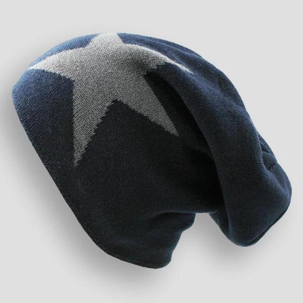 A star print on the front elevates the minimalistic design of this slouchy beanie. Knit from the softest acrylic blend, it keeps you cozy and warm when the weather takes a turn while looking super stylish.Â