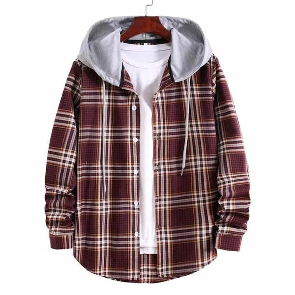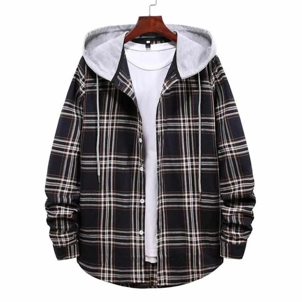 Street-style aesthetic meets superb comfort in this Sky Madrid Hooded Plaid Shirt. Crafted from a lightweight blend, it features a hooded collar, button-up fastening, and plaid pattern that pairs easily with your favorite pair of jeans or trousers. Perfect for a casual weekend brunch or post-workout activities.Â