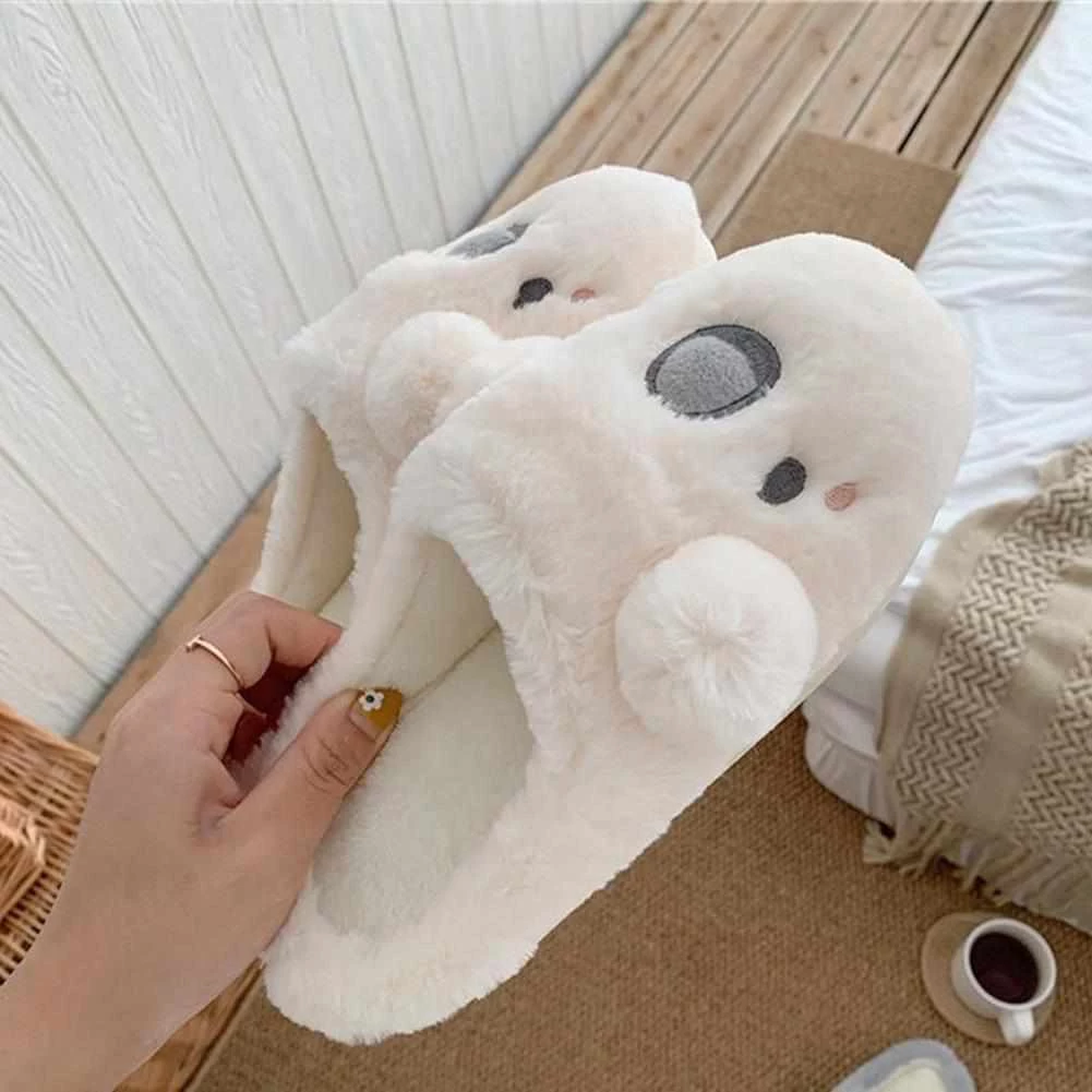 Fluffy comfort for all-day wear. Slip into these soft and snuggly slippers and you’ll never want to get out. Made from the softest plush, they keep the feet warm and cozy, while the non-slip rubber sole is perfect for indoor-outdoor transitions.Â