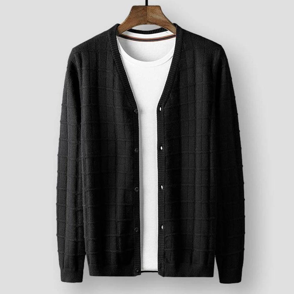 A luxuriously soft blend delivers an elevated look and feel to the timeless cardigan. The relaxed fit layers effortlessly over a cashmere turtleneck and brings a pleasant warmth without overheating.