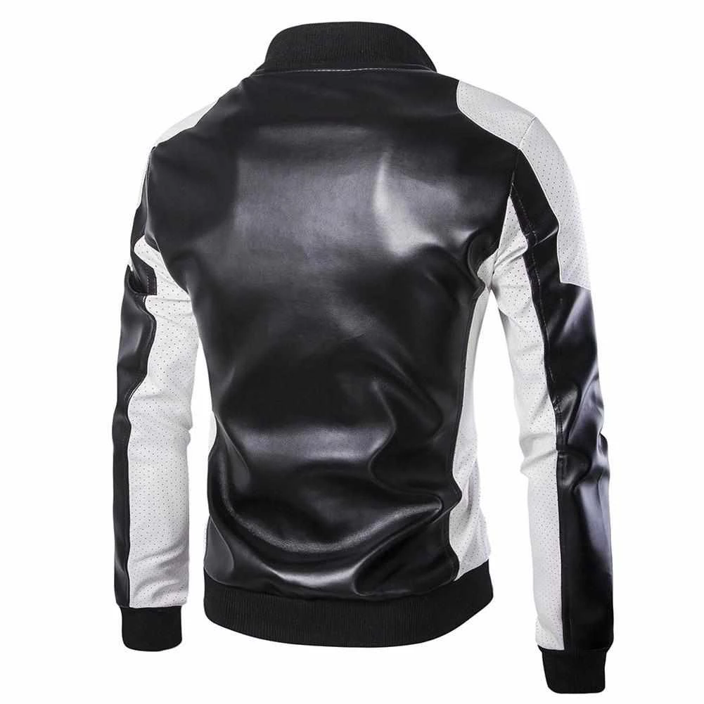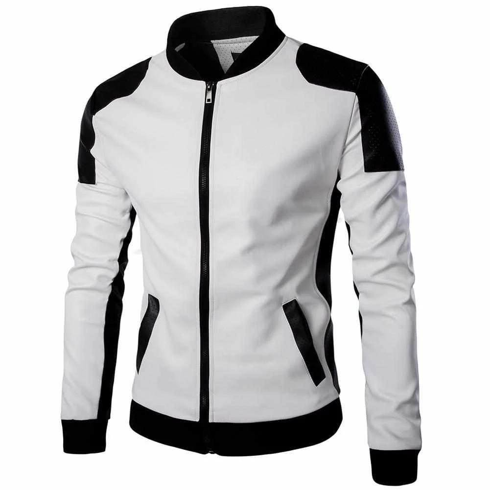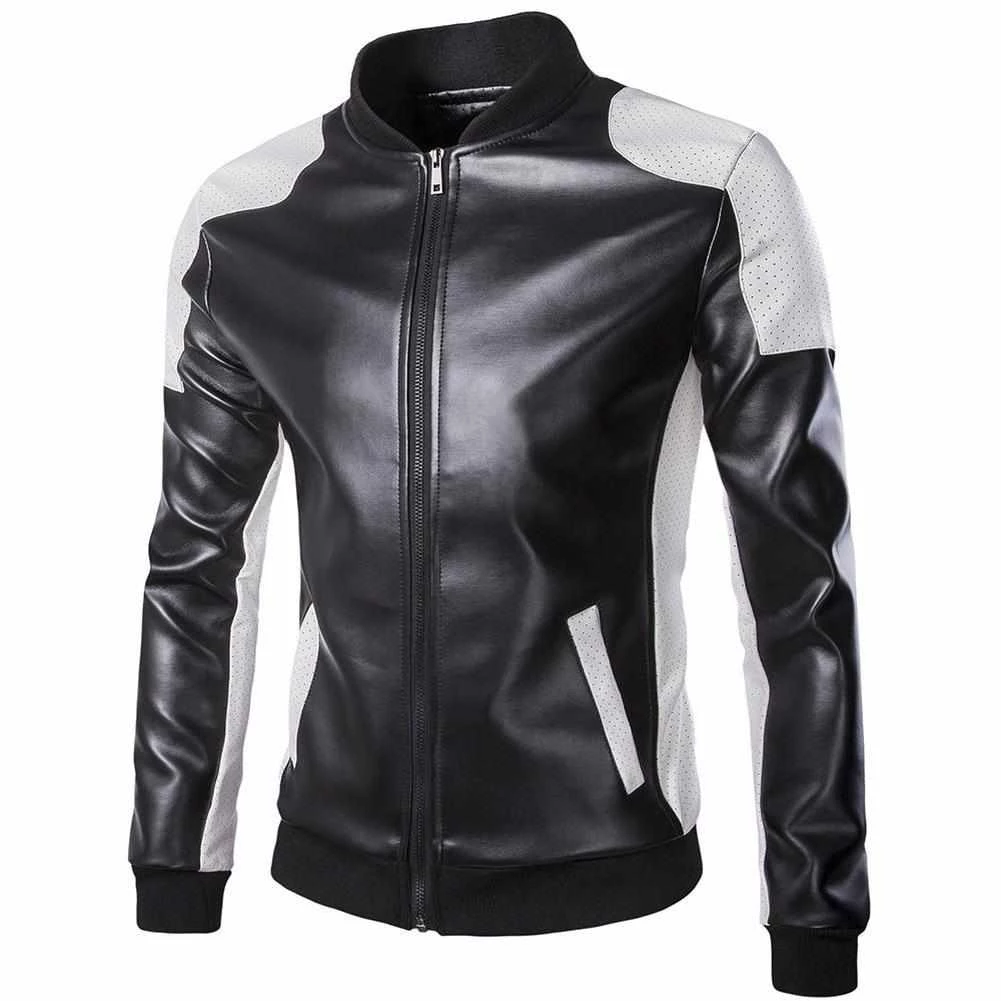 Biker aesthetic meets unmatched comfort in this iconic jacket. Imagined in eco-friendly vegan leather, the classic silhouette boasts a stand collar and ribbed cuffs, finished in contrasting black and white palette. Pair with denim jeans for an edgy, but classy look.