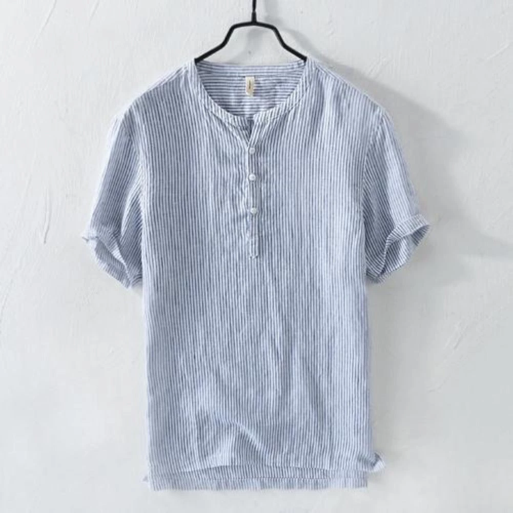 Kick back and enjoy the carefree summer spirit with this Saint Morris Gozo Striped Linen Shirt. Imagined in a luxuriously smooth blend, this short-sleeve shirt feels absolutely amazing on warm, summer days and subtly elevates casual ensembles.Â
