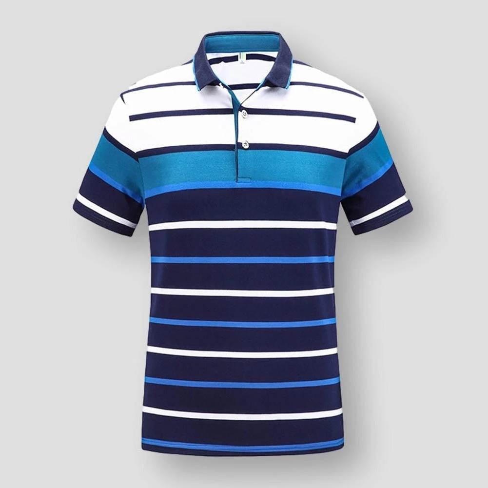 Colorful stripes adorn this gorgeous off-duty shirt. Inspired by the classic polo silhouette, this short-sleeve tee is made from pure cotton for unparalleled comfort from morning to night.
