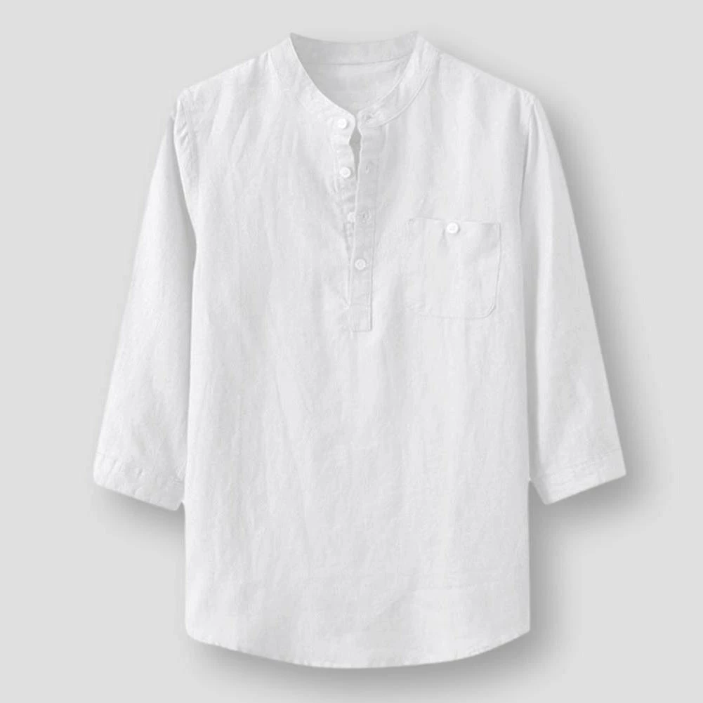 A relaxed fit and crisp linen-blend make this shirt a summer must-have. With its minimalistic design and solid color, it offers endless styling versatility without sacrificing comfort. Perfect for sunset strolls on the beach or seaside dinner dates.