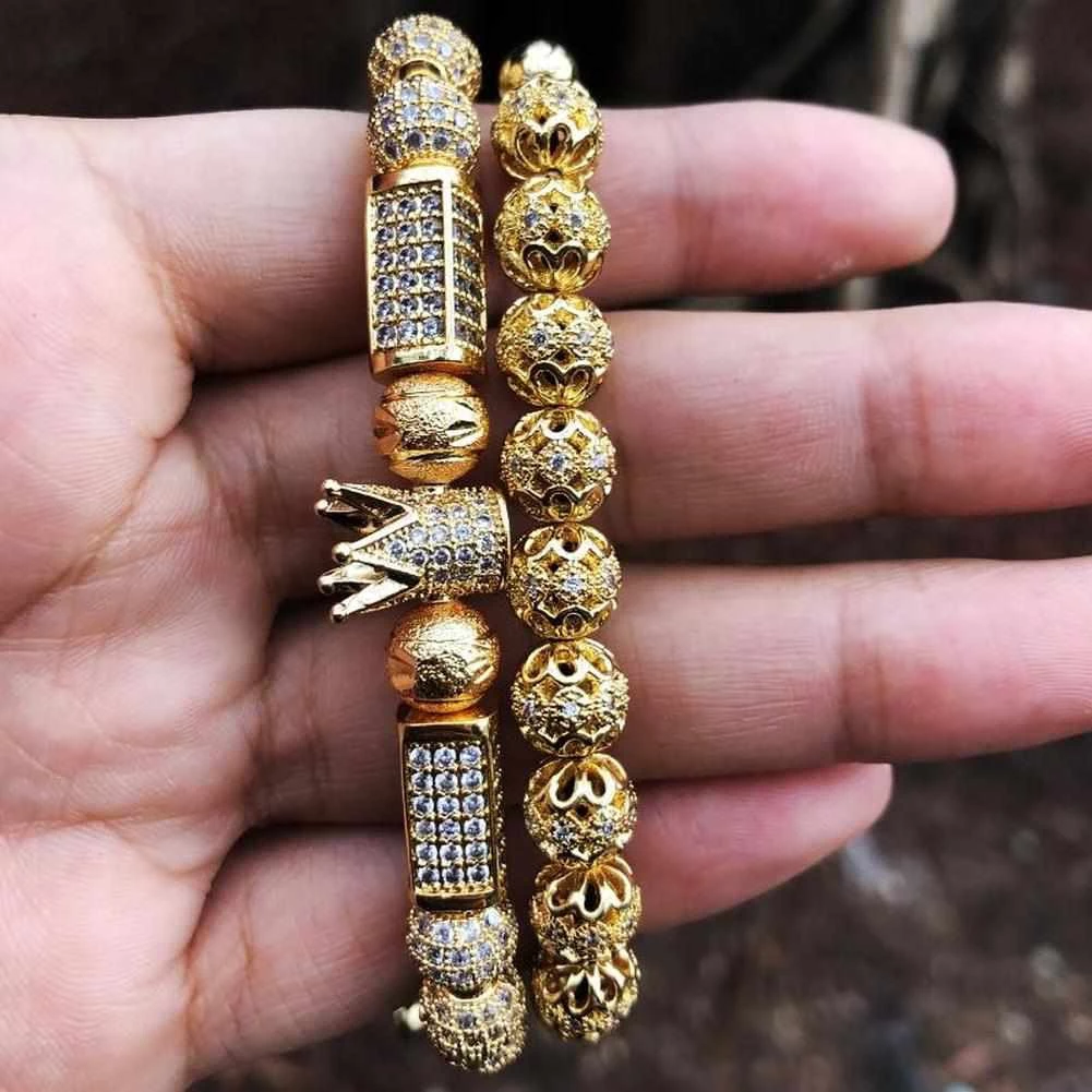 Infused with a royal motif, this bracelet adds a luxurious appeal to any outfit. A variety of copper beads shape this remarkable piece, adorned with eye-catchy Zirconia. Perfect for incorporating into a smart-casual or laid-back edits equally.