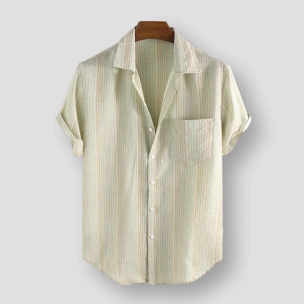 Crisp linen blend lends unbeatable comfort to this handsome summer staple. Cut in a relaxed fit that’s easy to layer, this shirt boasts a subtle striped print and pairs perfectly with solid-color shorts or chinos.